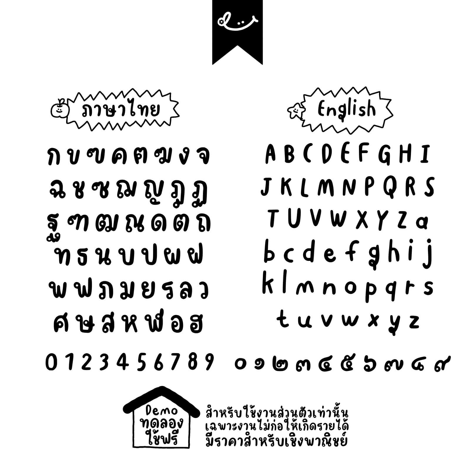 - ฟอนต์อนุญาตให้ใช้เพื่อการบันทึกสรุป งานส่งอาจารย์ หรือการตกแต่งรูปภาพเพื่อการใช้งานส่วนบุคคลเท่านั้น