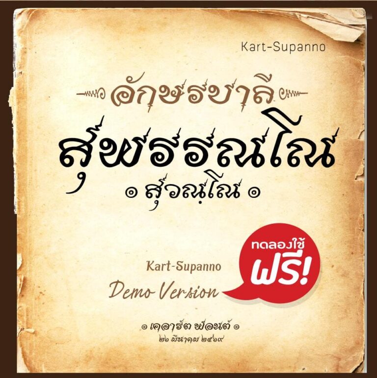 ฟอนต์ เคอาร์ต-สุพรรณโณ (Kart-Supanno) – เป็นฟอนต์ที่เขียนโดยได้แรงบันดาลใจจากลายมือเขียนของ อ.จินดา เนื่องจำนงค์ #ฟอนต์บาลี #ฟอนต์ไทยโบราณฟอนต์นี้มีลายกราฟิกอยู่ในฟอนต์ด้วยครับ
