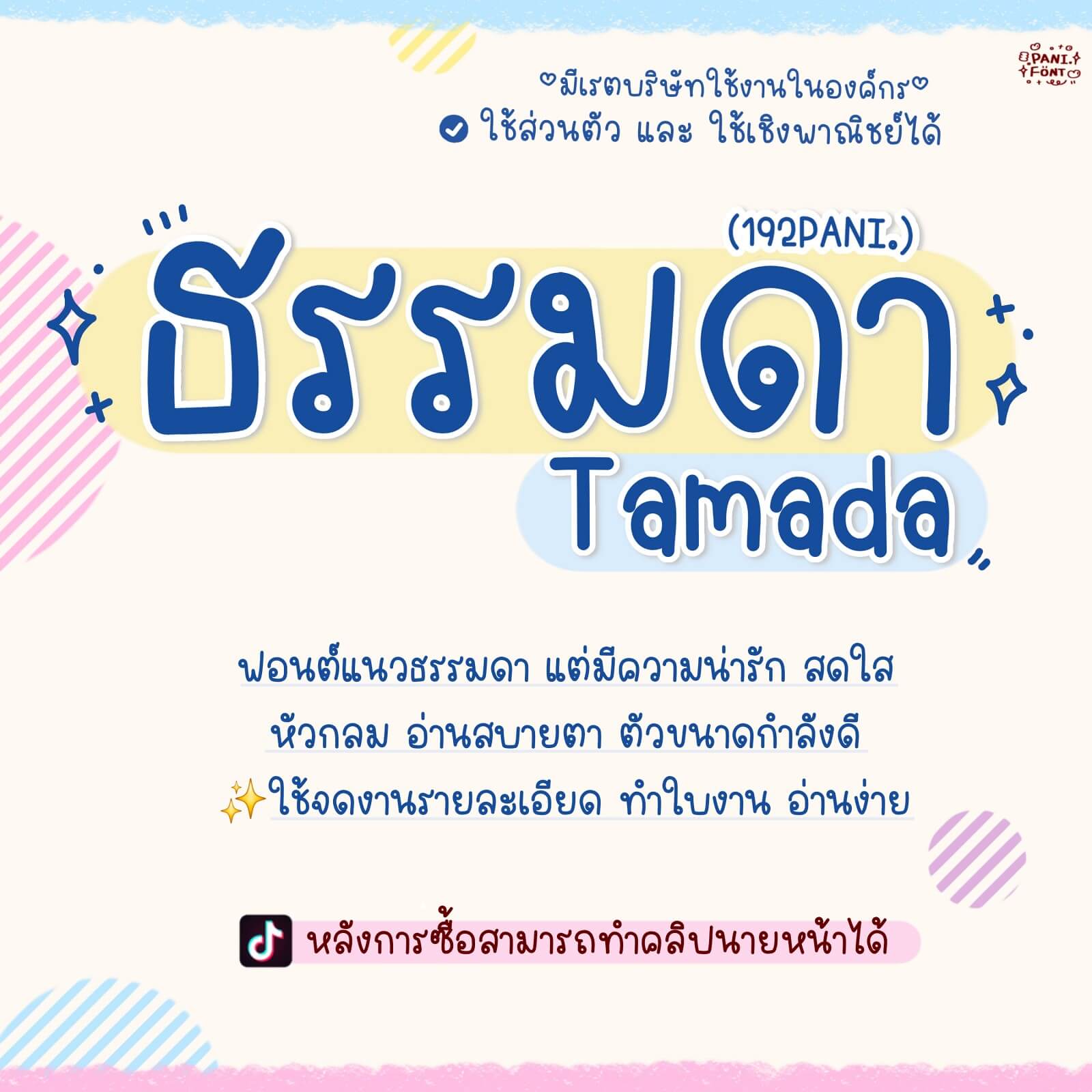 ฟอนต์ 192PANI.ธรรมดา – ฟอนต์แนวธรรมดา แต่มีความน่ารัก สดใส หัวกลม อ่านสบายตา ตัวขนาดกำลังดี ตั้งเครื่อง GoodNote คือรอดแน่นอน งานลงรายละเอียดเยอะๆ ใช้ได้ยาวๆ