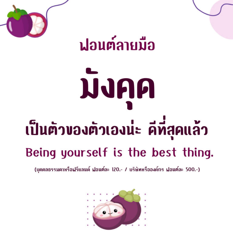 ฟอนต์ลายมือ มังคุด (Mangkud) แจกให้ใช้งานฟรี (ขนาดบาง) แบบส่วนตัวใช้งานเอง สำหรับใช้กับงานที่ไม่ก่อเกิดรายได้ทั้งทางตรงและทางอ้อมเท่านั้น เช่น สรุปงานส่งอาจารย์ ช็อทโน้ต สรุปเนื้อหาไว้อ่านหนังสือสอบ