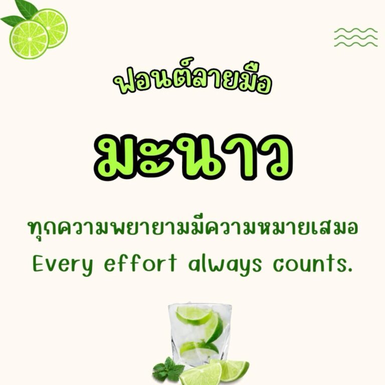 ฟอนต์ลายมือ มะนาว (Manao) แจกใช้งานฟรี (Demo) สำหรับงานส่วนตัวที่ไม่ก่อให้เกิดรายได้เท่านั้น เช่น สรุปงานส่งอาจารย์, จดช็อตโน้ตอ่านสอบ, สไลด์นำเสนอในชั้นเรียน