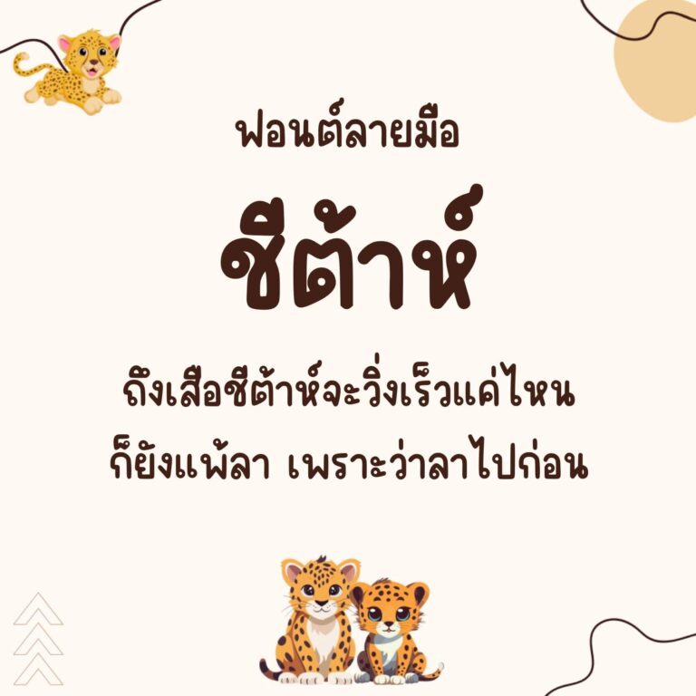 ฟอนต์ลายมือ ชีต้าห์ (Cheetah) แจกใช้งานฟรี (เวอร์ชันทดลองขนาดบาง) สำหรับงานที่ไม่เกิดรายได้ทั้งทางตรงและทางอ้อมเท่านั้น เช่น สรุปงานส่งอาจารย์ ฟอนต์ลายมือชีต้าห์ เป็นฟอนต์ลายมือธรรมดาๆ อ่านง่าย สบายตามากๆ ใช้ในงานเชิงพาณิชย์ได้หลายรูปแบบ