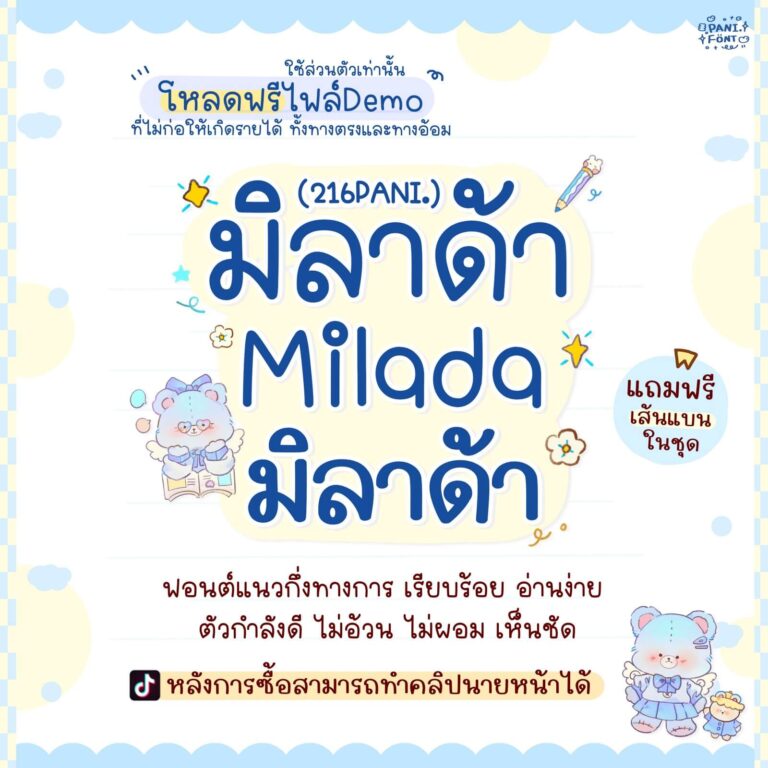 ฟอนต์ 216PANI.มิลาด้า+แถมของตกแต่ง – ฟอนต์แนวกึ่งทางการ เรียบร้อย อ่านง่าย ขนาดตัวกำลังดี ไม่อ้วน ไม่ผอม เห็นชัด