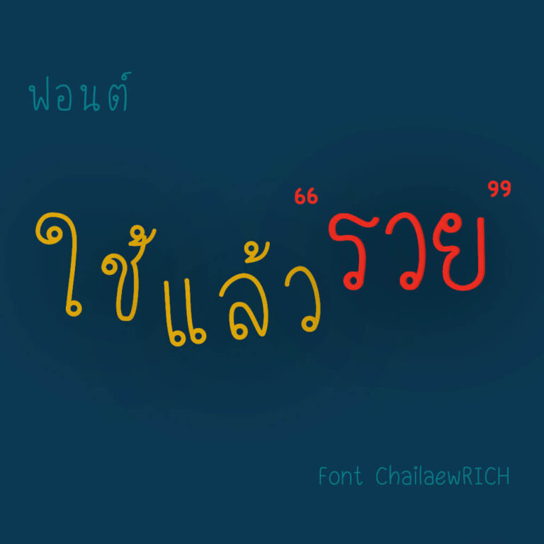 ฟอนต์ Chailaewrich (อ่านว่า ใช้แล้วริช = ใช้แล้วรวยนั่นเอง) ฟอนต์นี้ได้แรงบันดาลใจมาจาก การอยากจะมีฟอนต์ชื่อมงคลๆ ซักชื่อ ก็ไป นั่งคิด นอนคิด ตะแคงคิด …. คิด…แต่ไม่ถึง คิด คิด แต่ไม่ถึงเธอ… สุดท้ายเลยเป็น “ใช้แล้วริช” เลยละกัน