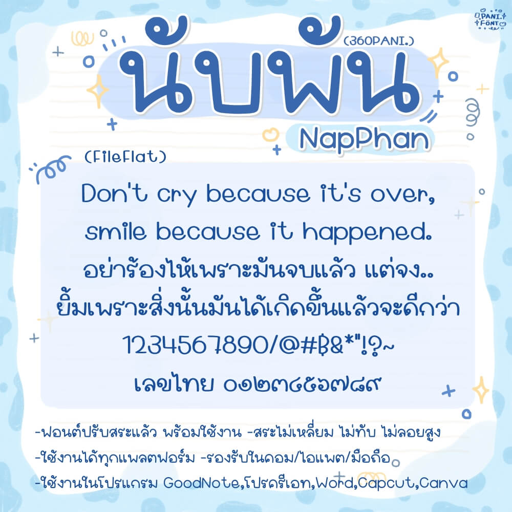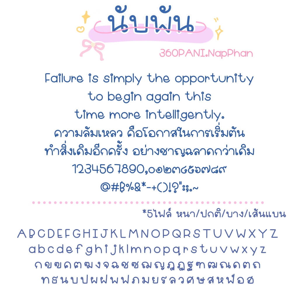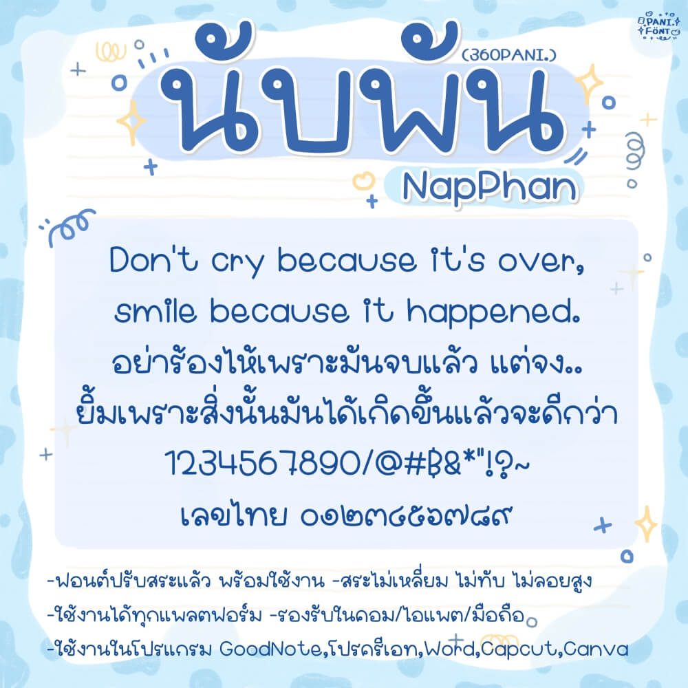 ฟอนต์ 360PANI.นับพัน – ฟอนต์หัวกลม แนวเรียบร้อย แต่ยังน่ารัก ใช้จดงานรายละเอียด อ่านง่าย ดูสะอาดตา หรือจะแต่งภาพ แต่งเปิดคลิป ทำสื่อ ทำใบงาน พรินต์งาน ก็เรียบร้อยน่ารัก