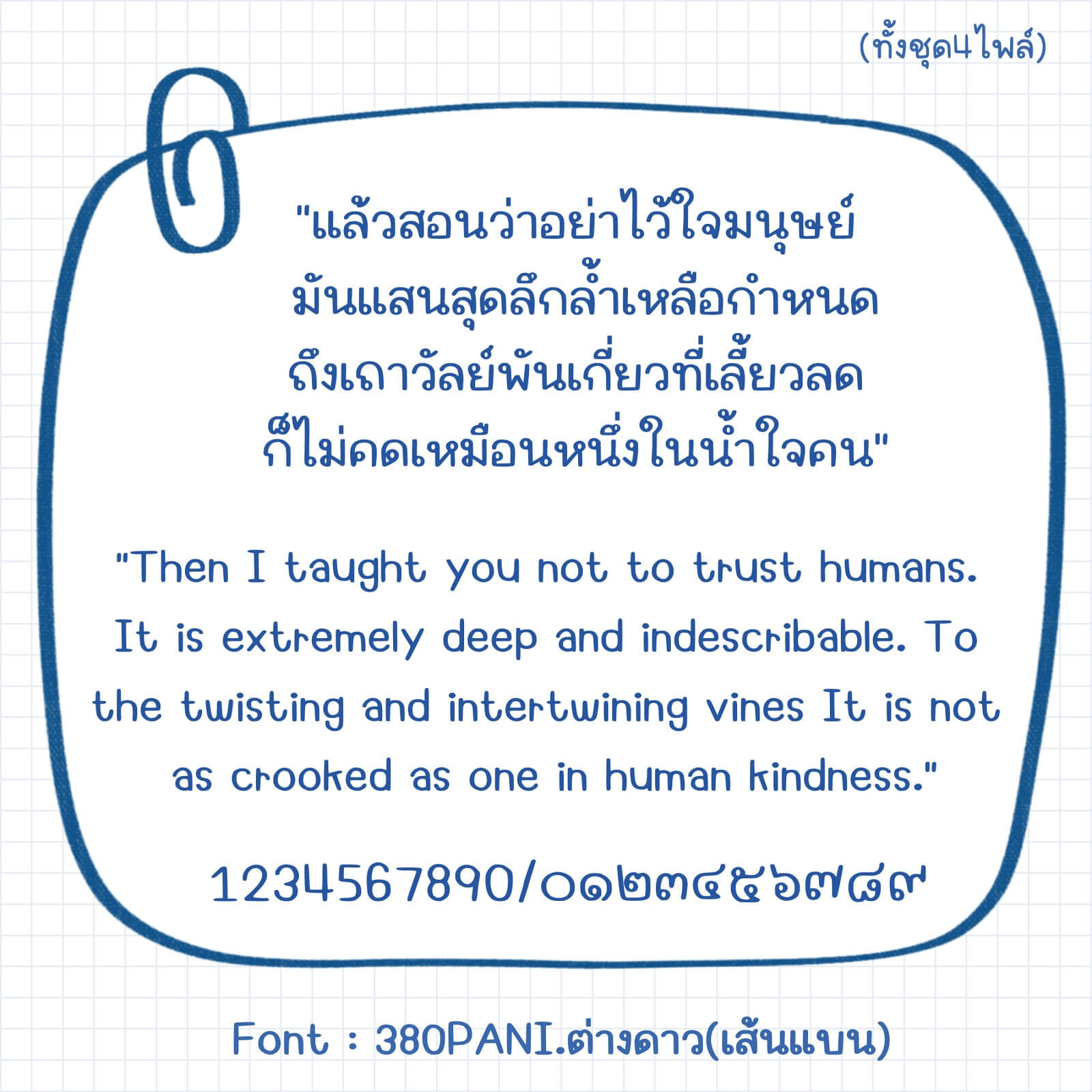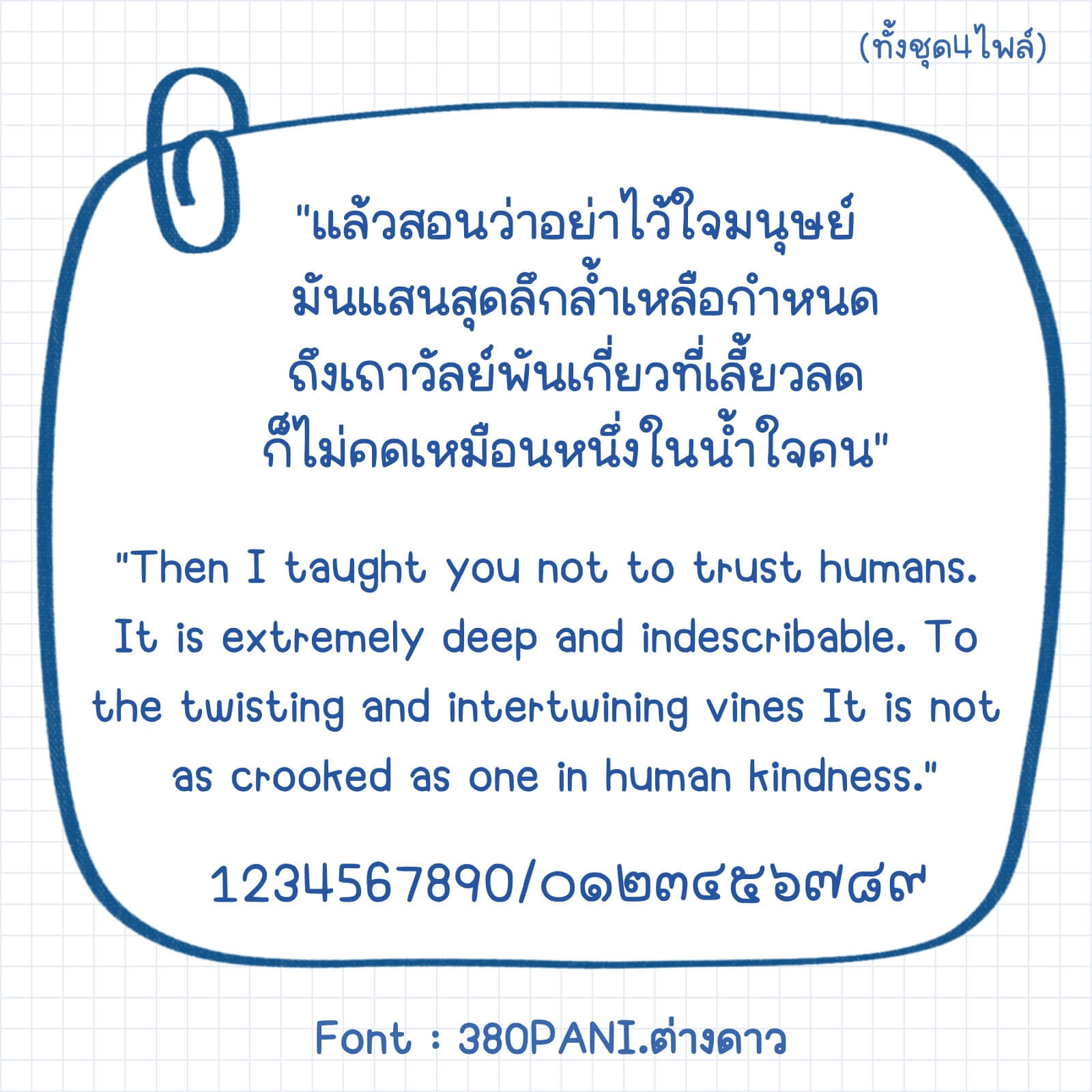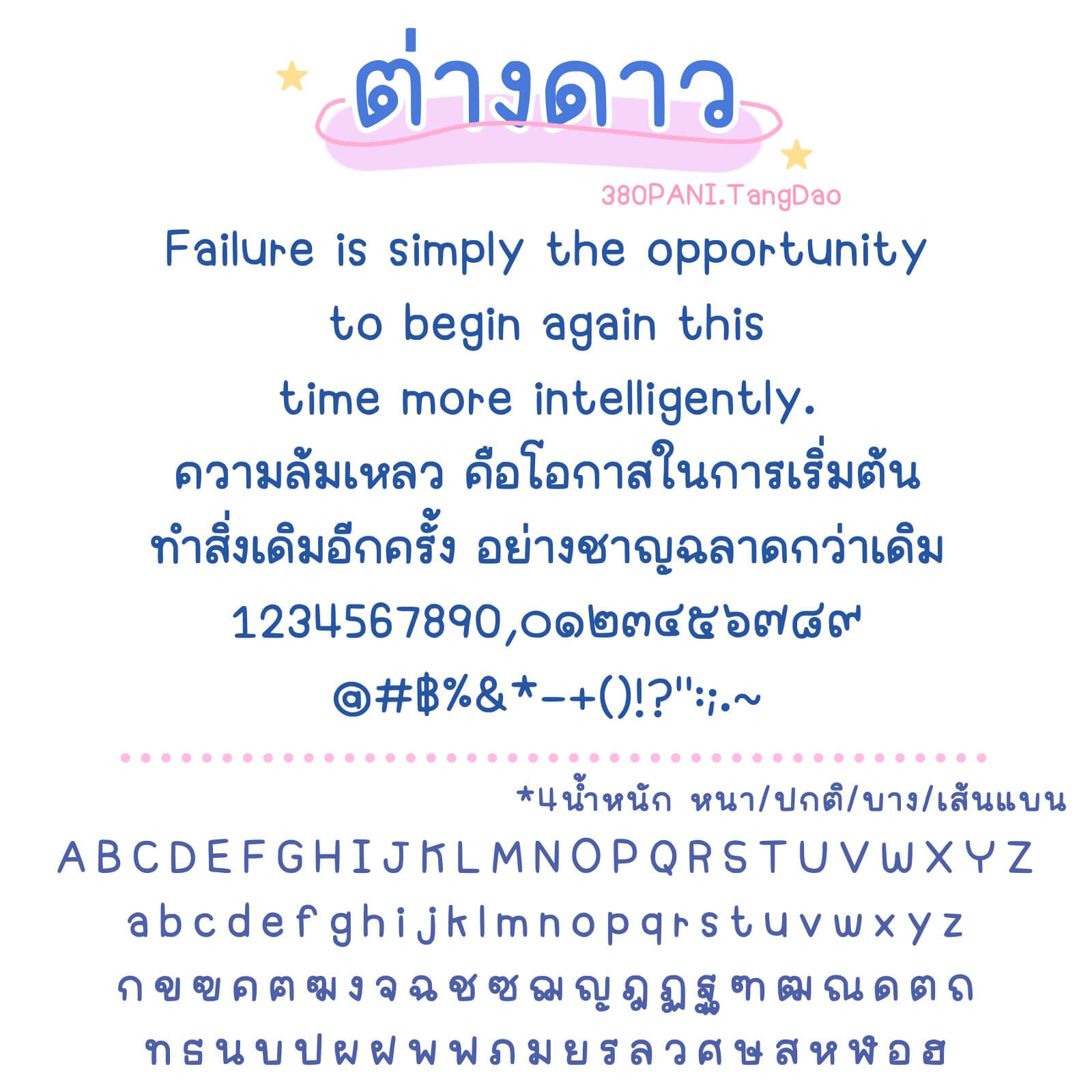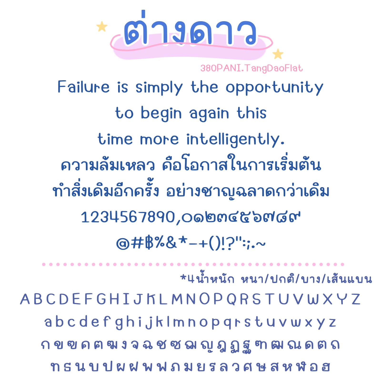ฟอนต์มี 4 ไฟล์ – น้ำหนัก บาง ปกติ หนา เส้นแบน