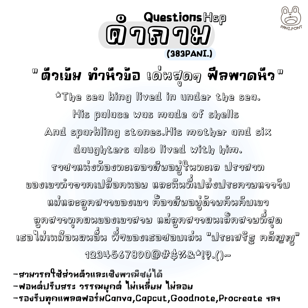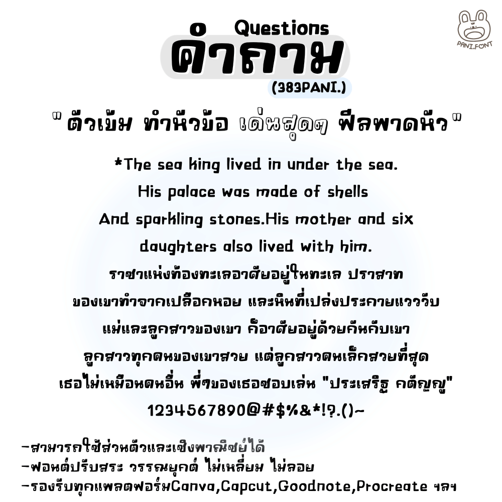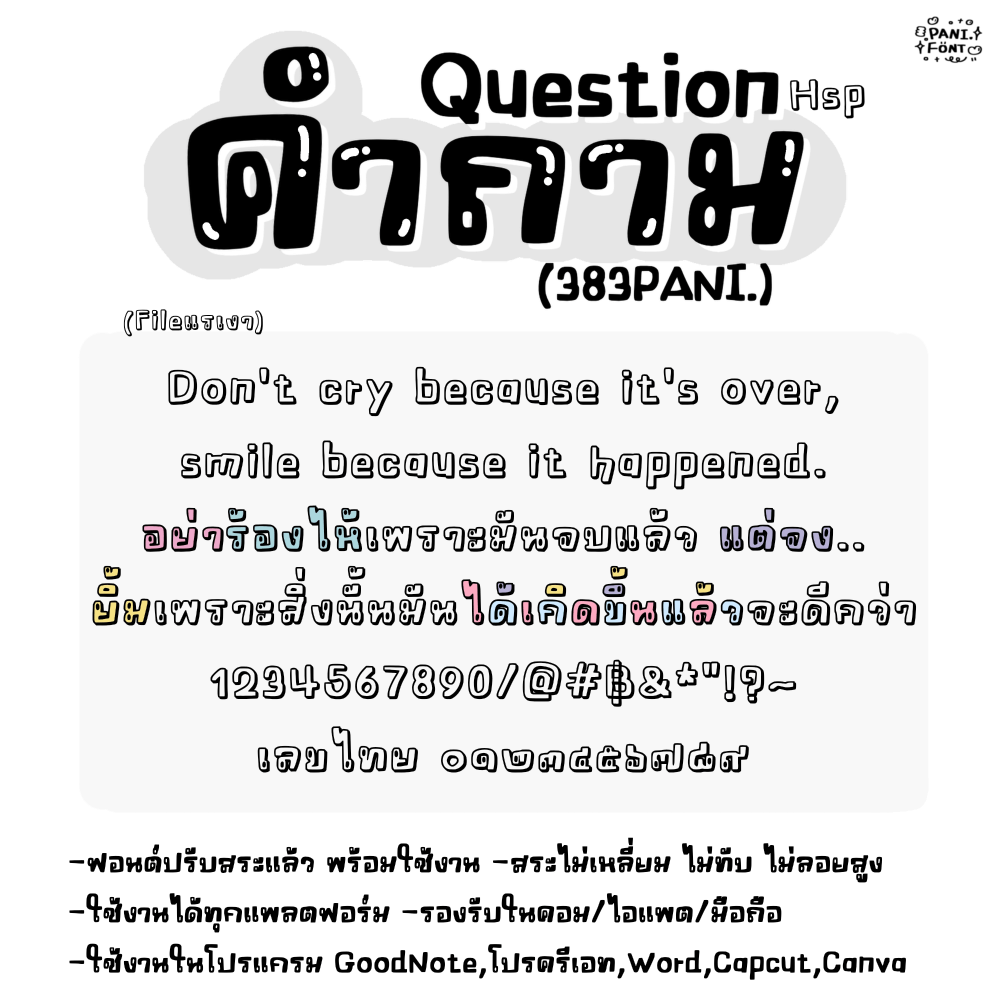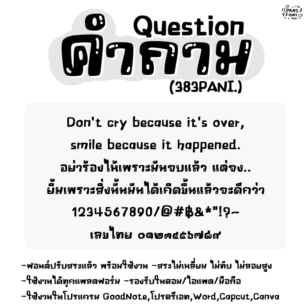 ฟอนต์ 383PANI.คำถาม – ฟอนต์หัวกลม น่ารัก อ่านง่าย ใช้แต่งคลิป จดโน้ต ให้อารมณ์เข้าถึงง่าย