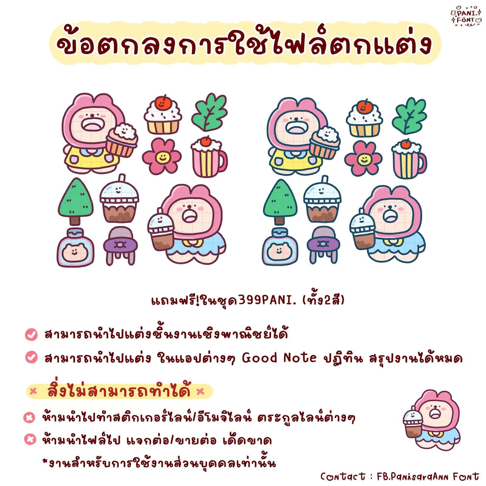 ฟอนต์ 399PANI.ถ้วยจิ๋ว – ฟอนต์แนวน่ารัก แต่เรียบร้อย ใช้งานง่าย มีของตกแต่งแถมด้วยในชุด ไม่ต้องหาเพิ่มที่ไหน