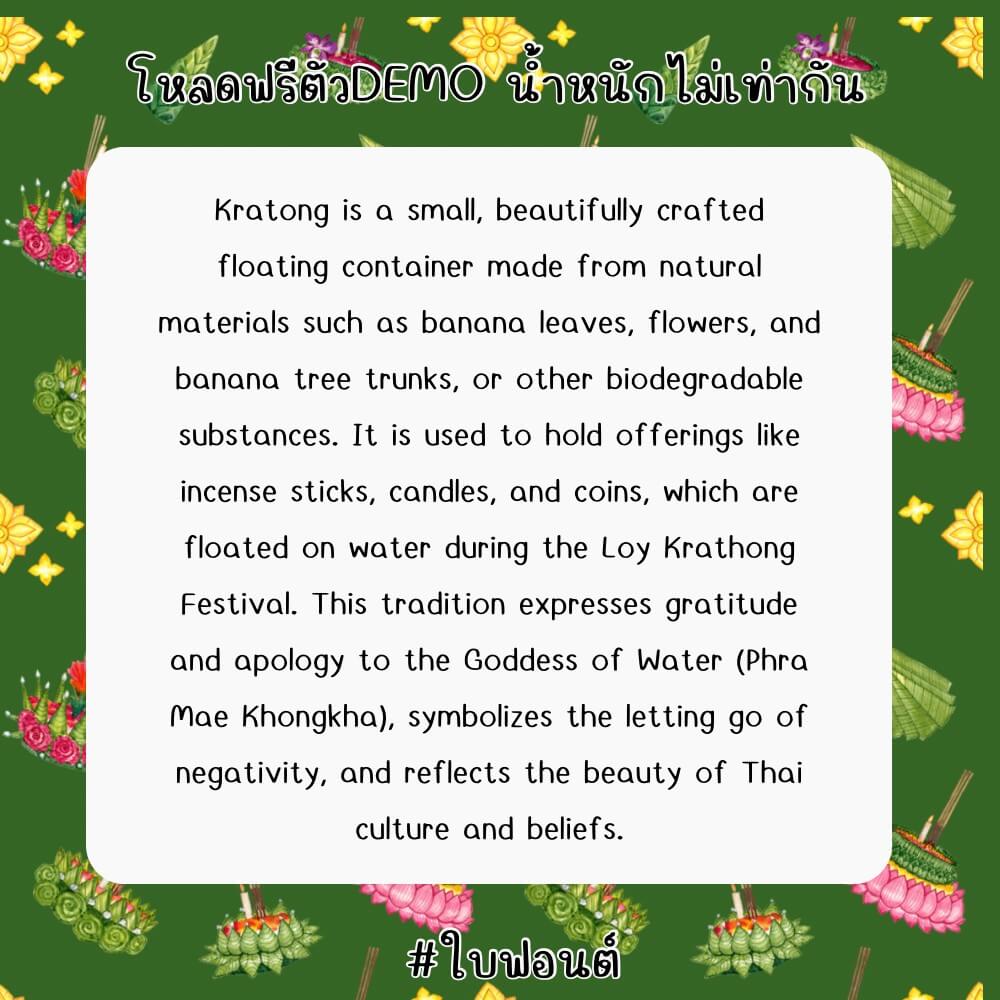 ฟอนต์ กระทง – แจกฟรี! เวอร์ชันทดลอง (Demo) สำหรับใช้งานส่วนตัว