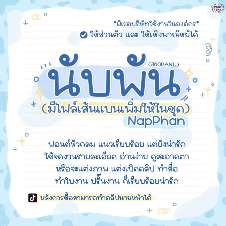 ฟอนต์ 360PANI.นับพัน – ฟอนต์หัวกลม แนวเรียบร้อย แต่ยังน่ารัก ใช้จดงานรายละเอียด อ่านง่าย ดูสะอาดตา หรือจะแต่งภาพ แต่งเปิดคลิป ทำสื่อ ทำใบงาน พรินต์งาน ก็เรียบร้อยน่ารัก