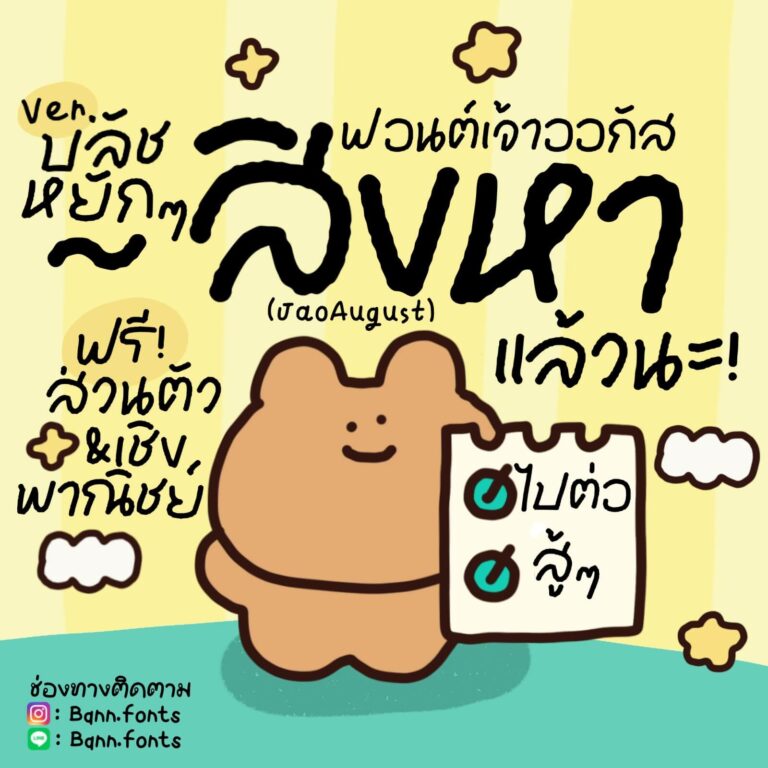 ฟอนต์เจ้าออกัส (บรัชหยัก) – แจกฟรี! ฟอนต์ไม่มีหัว เท็กซ์เจอร์หยักๆ เพิ่มความน่ารักตะมุตะมิ อ่านง่าย สระไม่ลอย ใช้งานได้ทั่วไป เช่น ทำคลิป แต่งปกรูป และอนุญาตให้สร้างผลงานแล้วหารายได้จากน้องได้เลย โหลดไว้ติดเครื่องไว้เลย แนะนำเลยค่ะ!