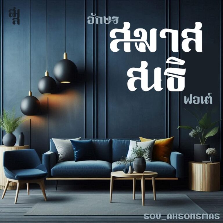 ฟอนต์อักษรสมาส-สนธิ – แนวคิดจากคำสมาส คำสนธิ คือเอาตัวอักษรมาเชื่อมเส้นกันเฉยๆ หรือรวมร่างกันไปเลย… ตัวปรกติเป็นอักษรสมาส เชื่อมเส้น ถ้ากด bold จะกลายเป็นอักษรสนธิ ร่วมร่างกัน