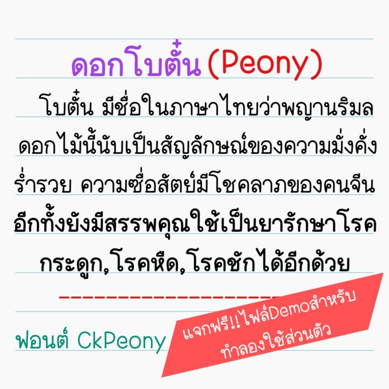 ฟอนต์ CkPeony – ฟอนต์ลายมือแนวน่ารักแต่ยังดูอ่านง่าย เป็นระเบียบ ขนาดฟอนต์กำลังพอดี เน้นอ่านง่ายสบายตาค่ะ