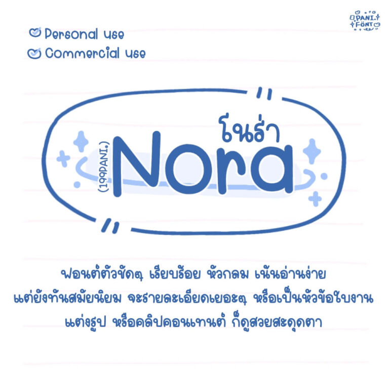 ฟอนต์ 199PANI.Nora – โหลดทดลองใช้ฟรีตัว Demo ฟอนต์ตัวชัดๆ เรียบร้อย หัวกลม เน้นอ่านง่าย แต่ยังทันสมัยนิยม จะรายละเอียดเยอะๆ หรือเป็นหัวข้อใบงาน แต่งรูป หรือคลิปคอนเทนต์ ก็ดูสวยสะดุดตา