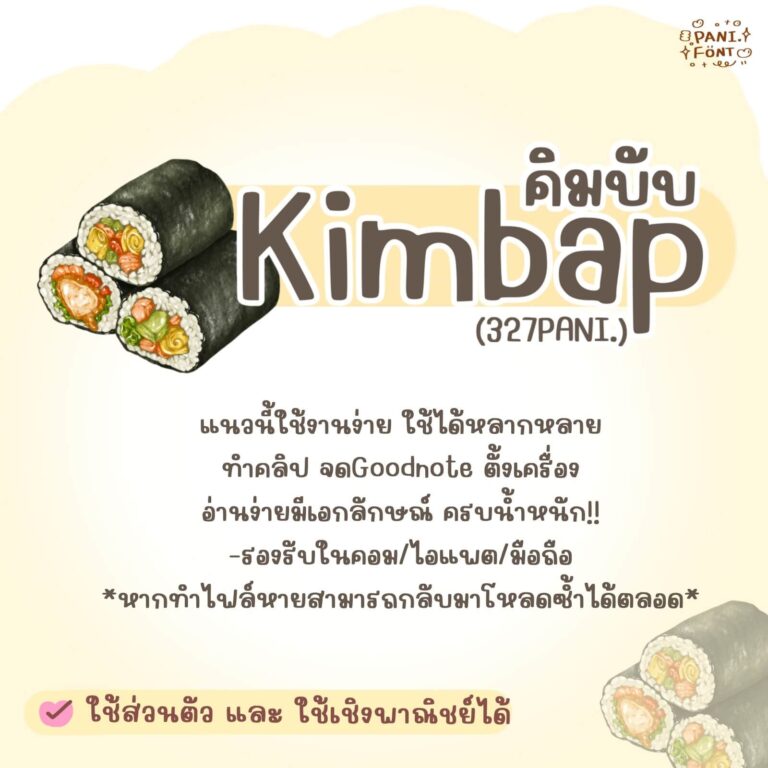 ฟอนต์ 327PANI.คิมบับ – โหลดทดลองใช้ฟรีตัว Demo แนวนี้ใช้งานง่าย ใช้ได้หลากหลาย ทำคลิป จด Goodnote ตั้งเป็นฟอนต์เครื่อง อ่านง่ายมีเอกลักษณ์ ครบน้ำหนัก!!