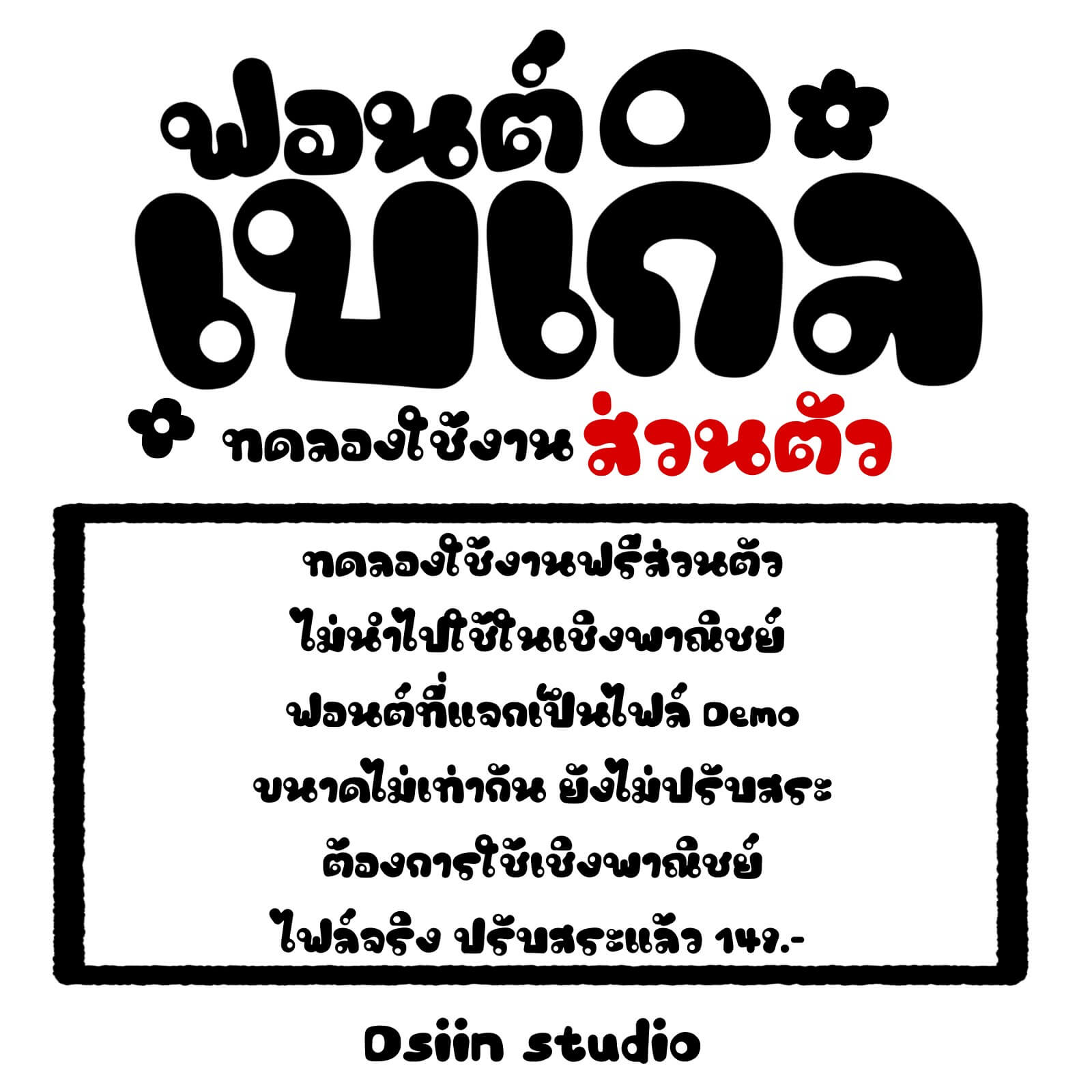 – ฟอนต์เป็นไฟล์ DEMO น้ำหนักไม่เท่ากัน ยังไม่ได้ปรับสระ