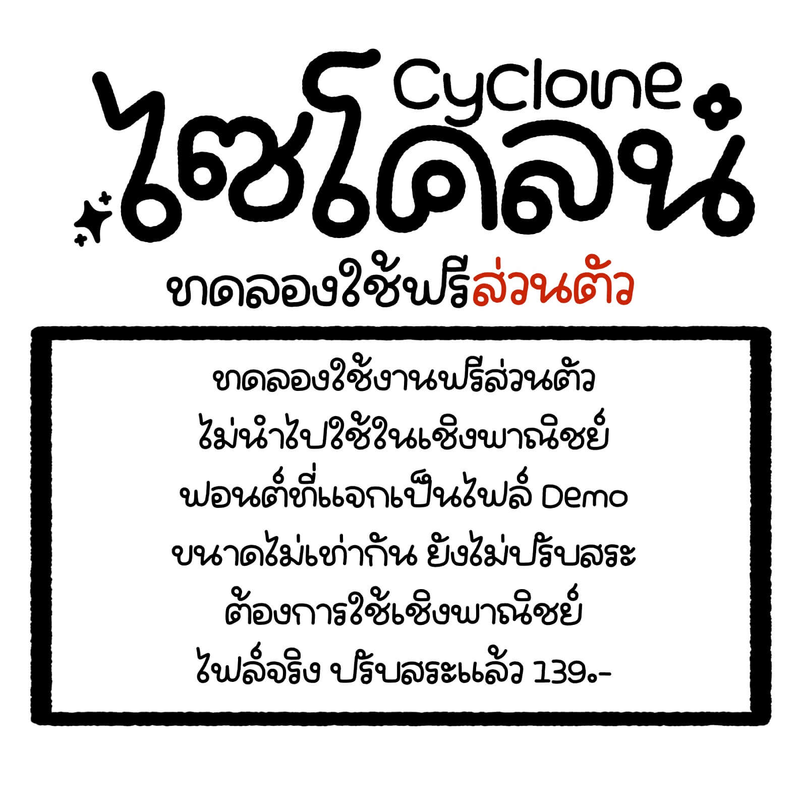 ฟอนต์:ไซโคลน – ฟอนต์ลายมือ ทดลองใช้งานฟรีแบบส่วนตัว