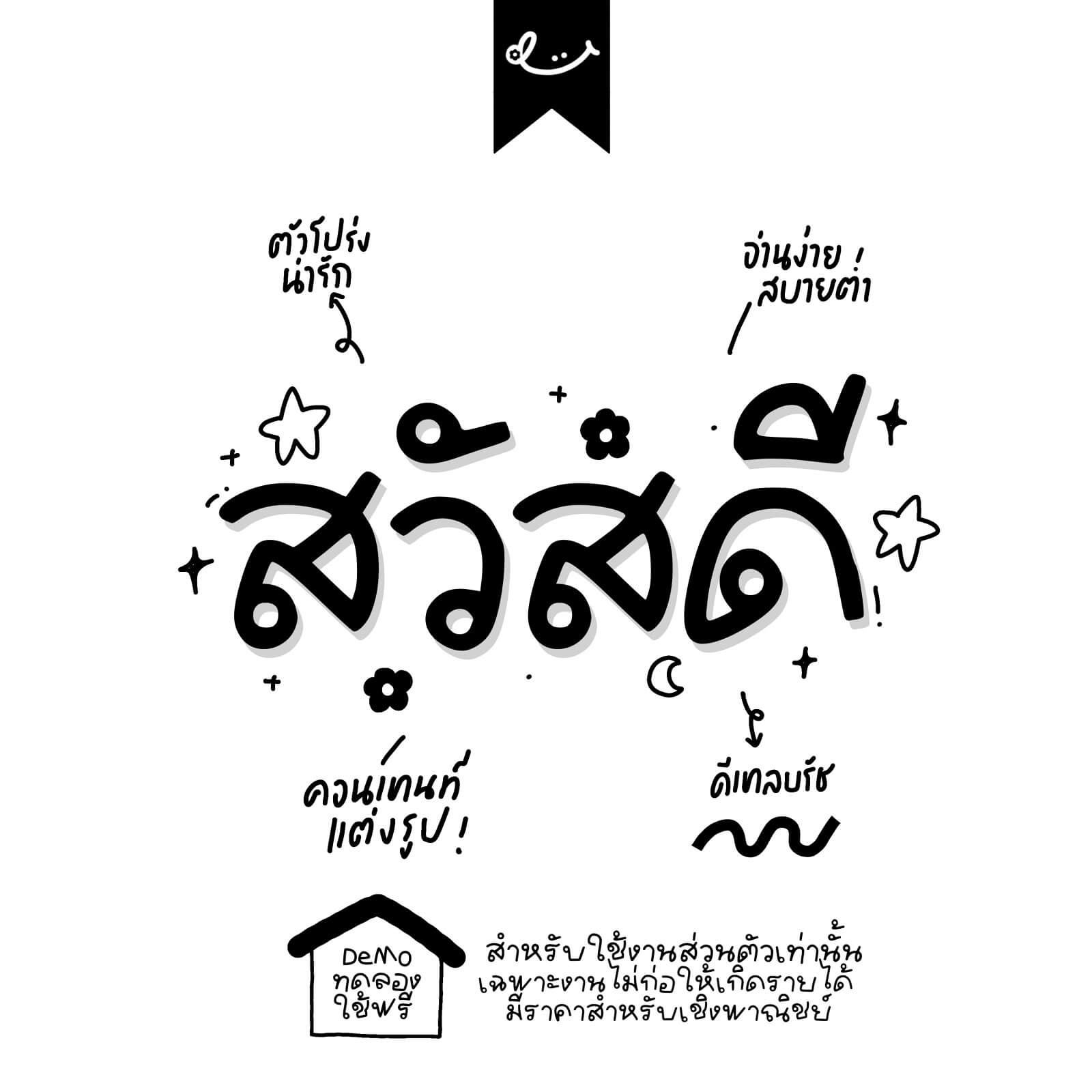 - ฟอนต์อนุญาตให้ใช้เพื่อการบันทึกสรุป งานส่งอาจารย์ หรือการตกแต่งรูปภาพเพื่อการใช้งานส่วนบุคคลเท่านั้น