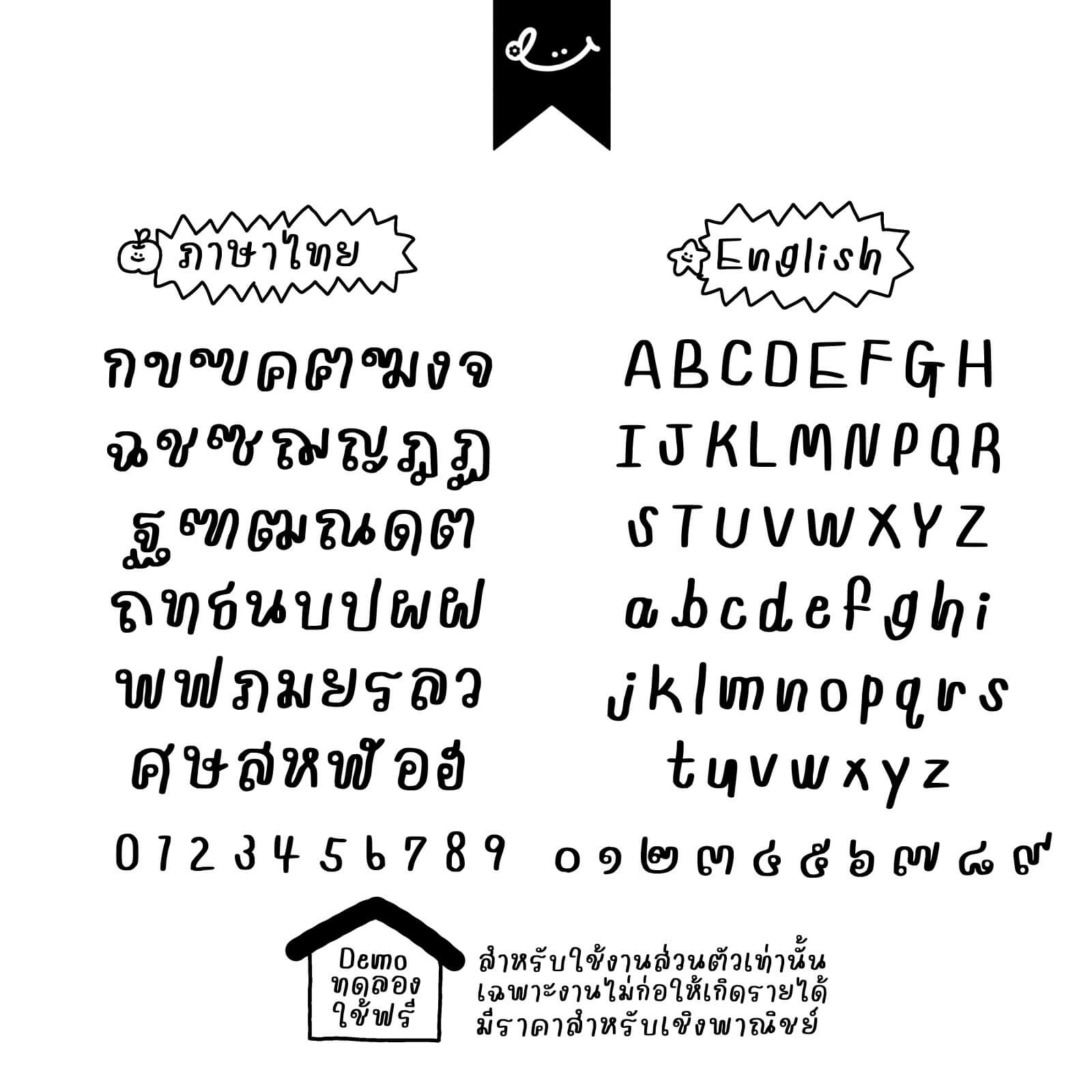 - ฟอนต์อนุญาตให้ใช้เพื่อการบันทึกสรุป งานส่งอาจารย์ หรือการตกแต่งรูปภาพเพื่อการใช้งานส่วนบุคคลเท่านั้น