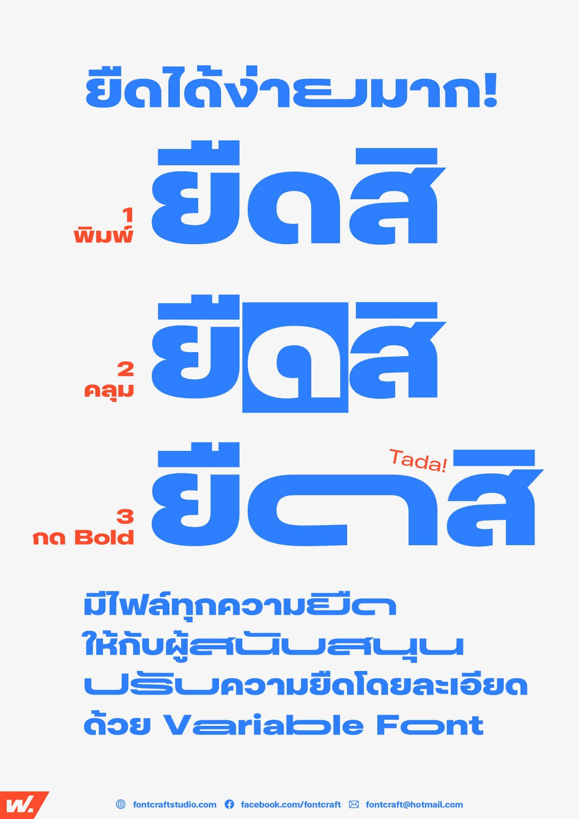 ฟอนต์ชุดนี้รองรับการปรับแต่งน้ำหนักโดยละเอียด (Variable Font) จำหน่ายแยกจากฟอนต์ชุดหลัก