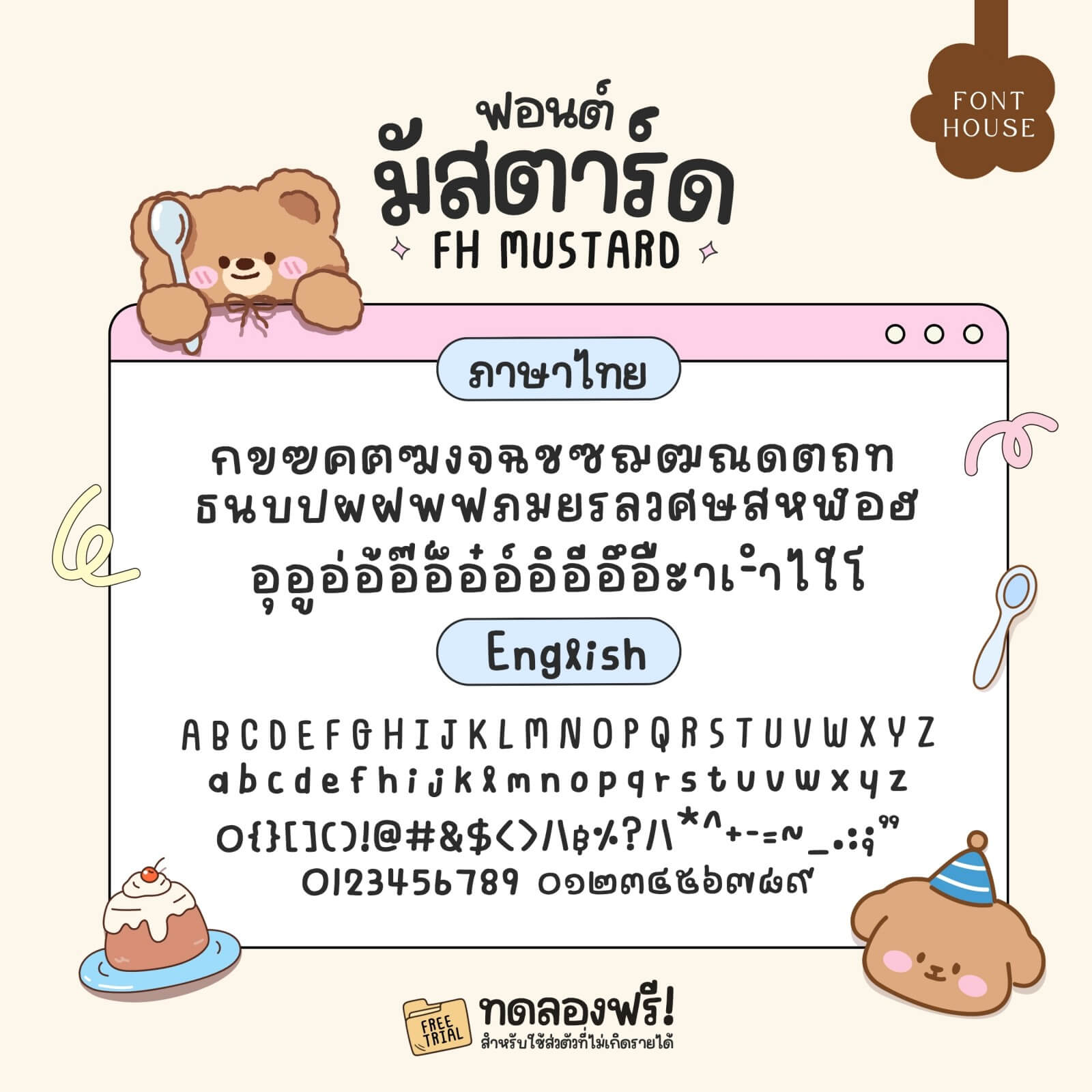 ฟอนต์มัสตาร์ด (FH Mustard) – ลายมือสไตล์น่ารักปุ๊กปิ๊กใช้งานได้ทุกโอกาส เวอร์ชันเต็ม มี 3 น้ำหนัก