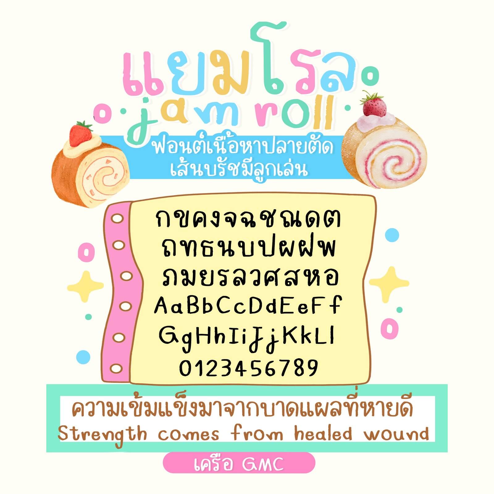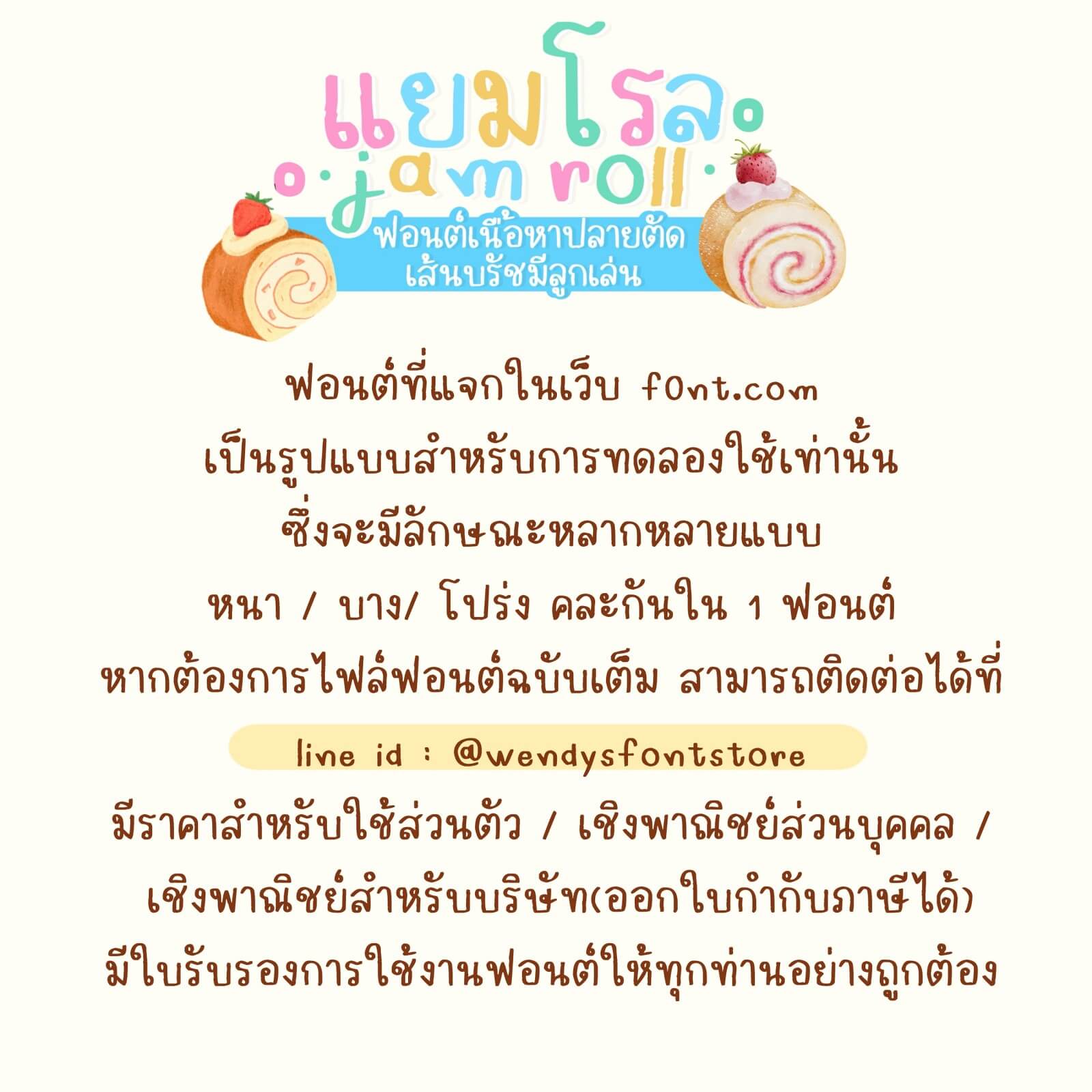 แยมโรล – ฟอนต์เนื้อหาปลายตัด เส้นบรัชมีลูกเล่น