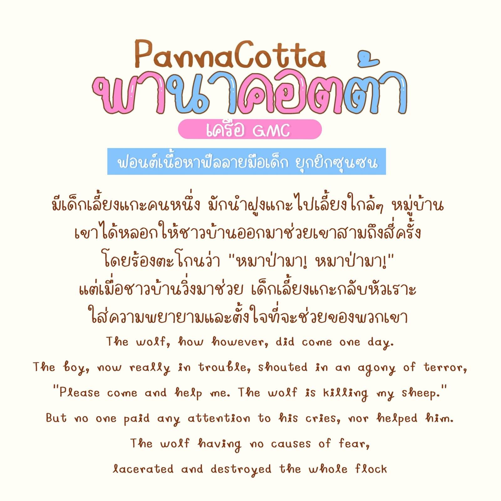 ฟอนต์พานาคอตต้า – ฟอนต์ลายมือเด็กน่ารักๆ ฟีลเขียนเอง