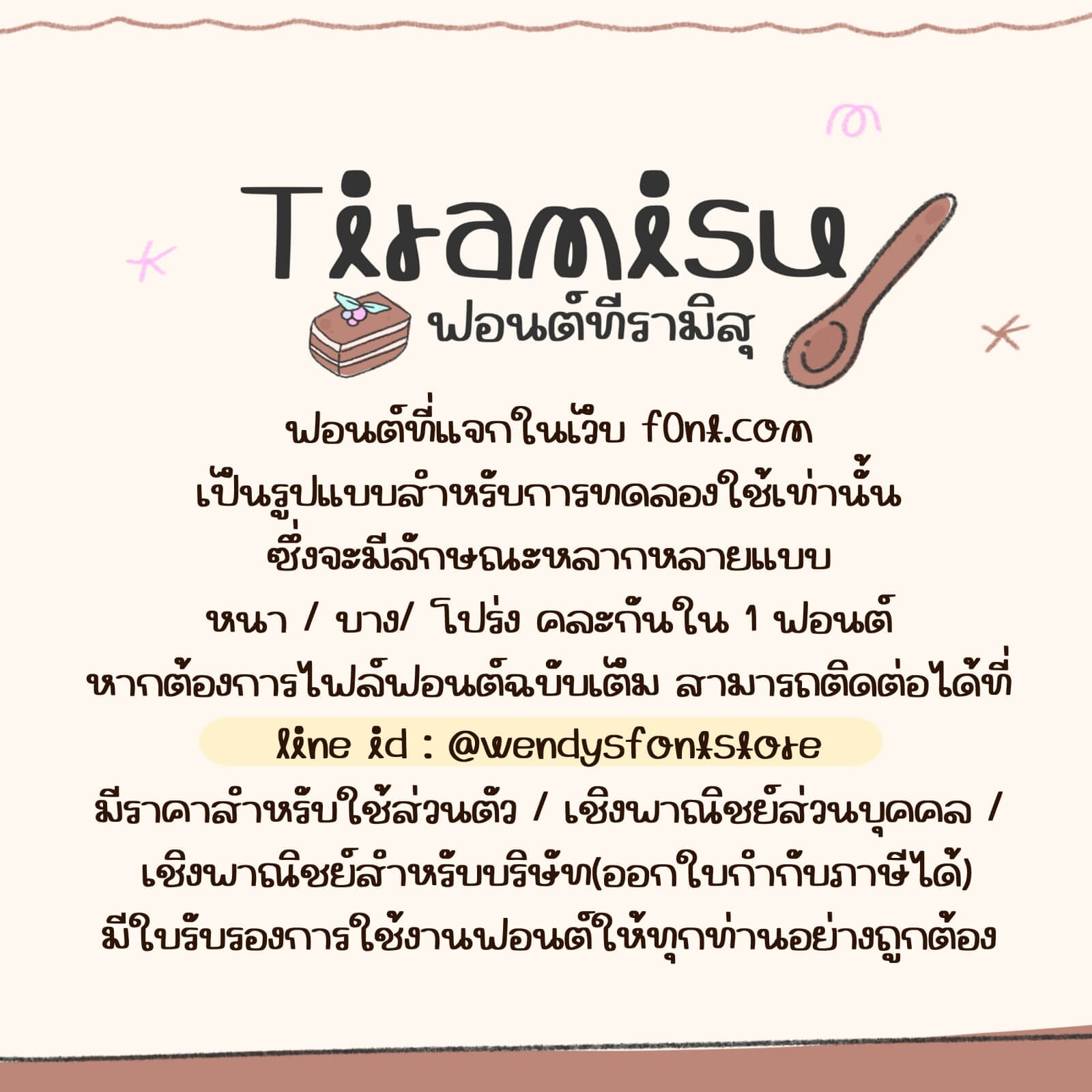 ไม่ใช่ไฟล์จริงของฟอนต์ - ✅ ใช้ได้ฟรีสำหรับงานส่วนตัว เช่น งานพรีเซนต์ งานออกแบบการบ้าน งานวิจัย งานส่วนบุคคล (เช่น การ์ดเชิญ งานแต่ง งานวันเกิด)
