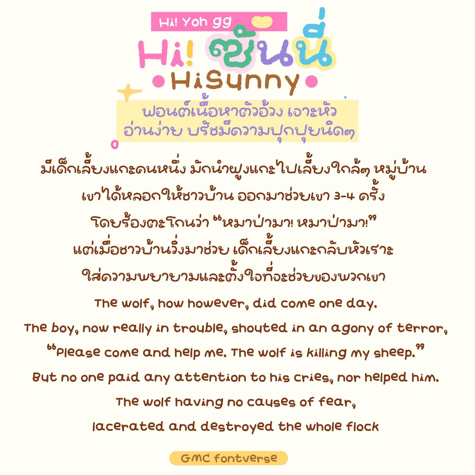 Hi! ซันนี่ – ฟอนต์เนื้อหาตัวอ้วง เจาะหัว อ่านง่าย บรัชมีความปุกปุยนิดๆ