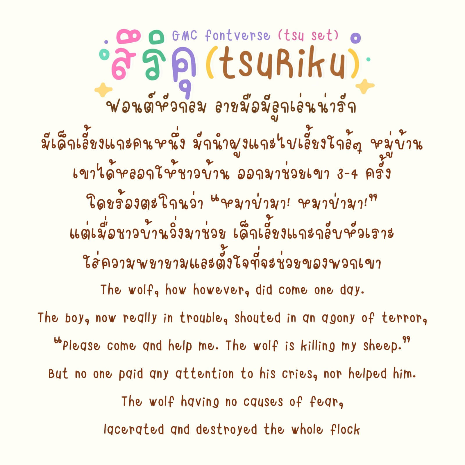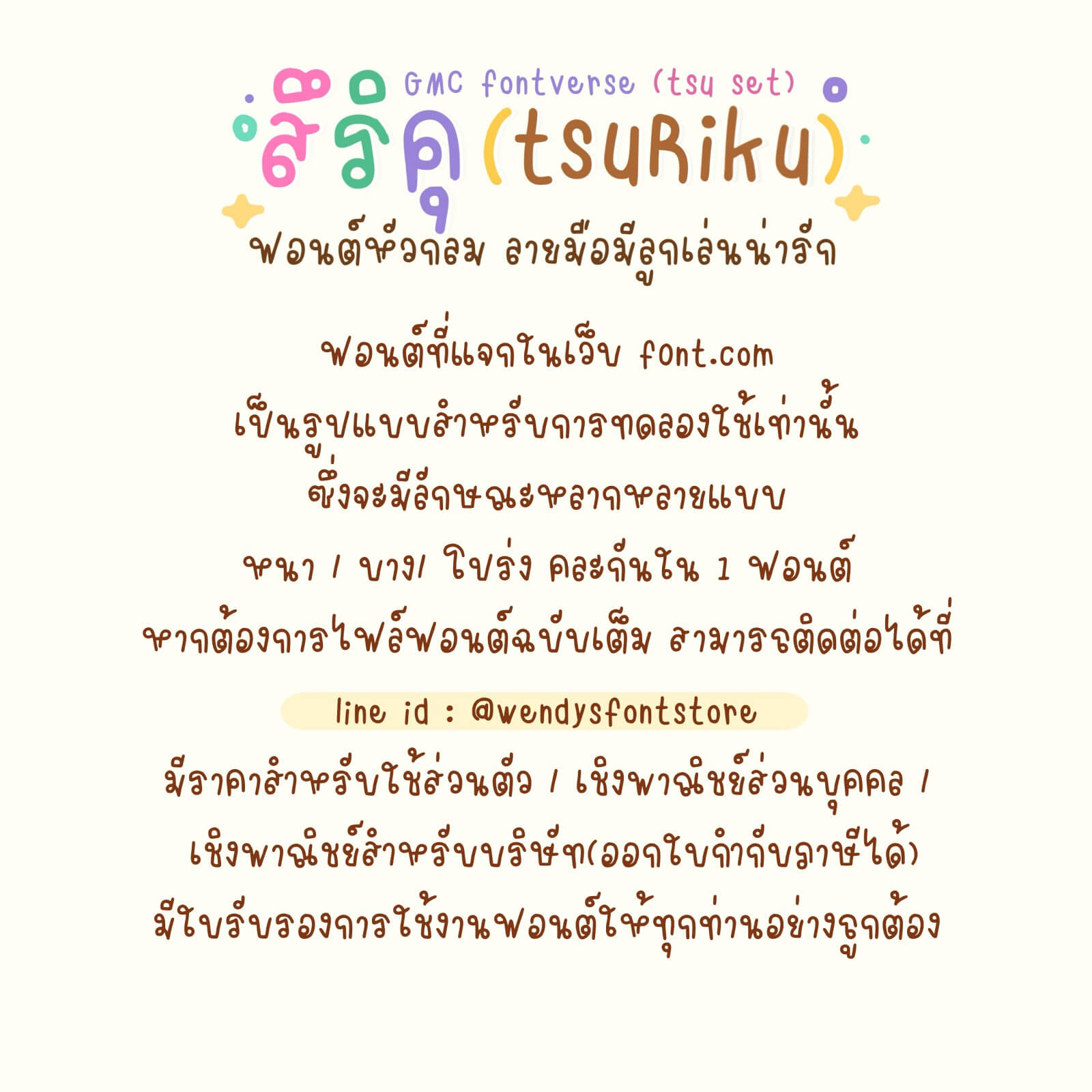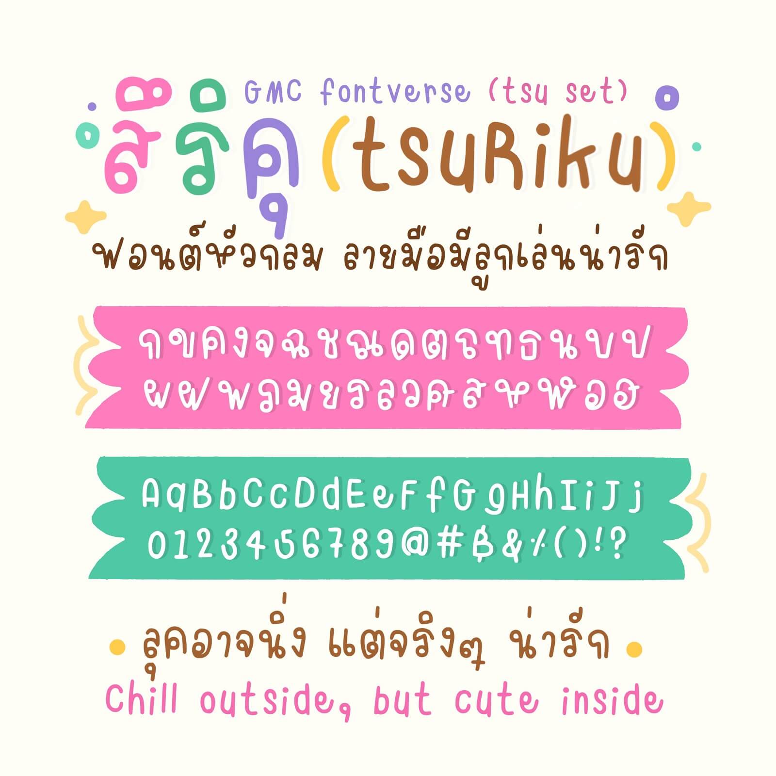 สึริคุ – ฟอนต์หัวกลม ลายมือมีลูกเล่นน่ารัก