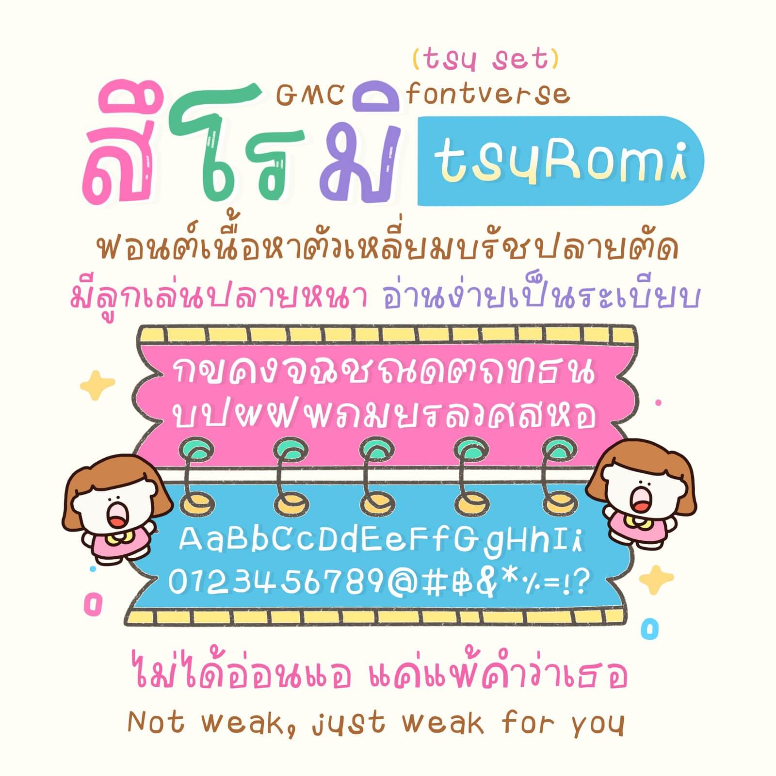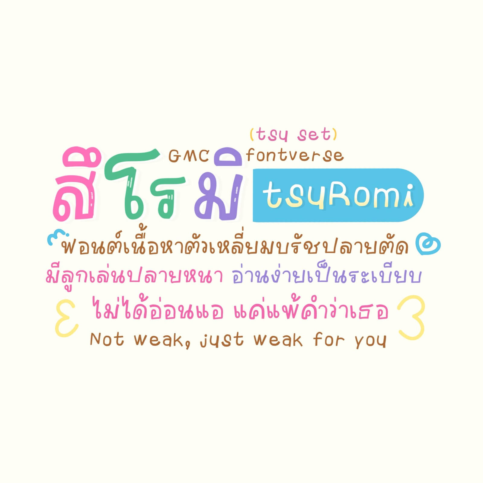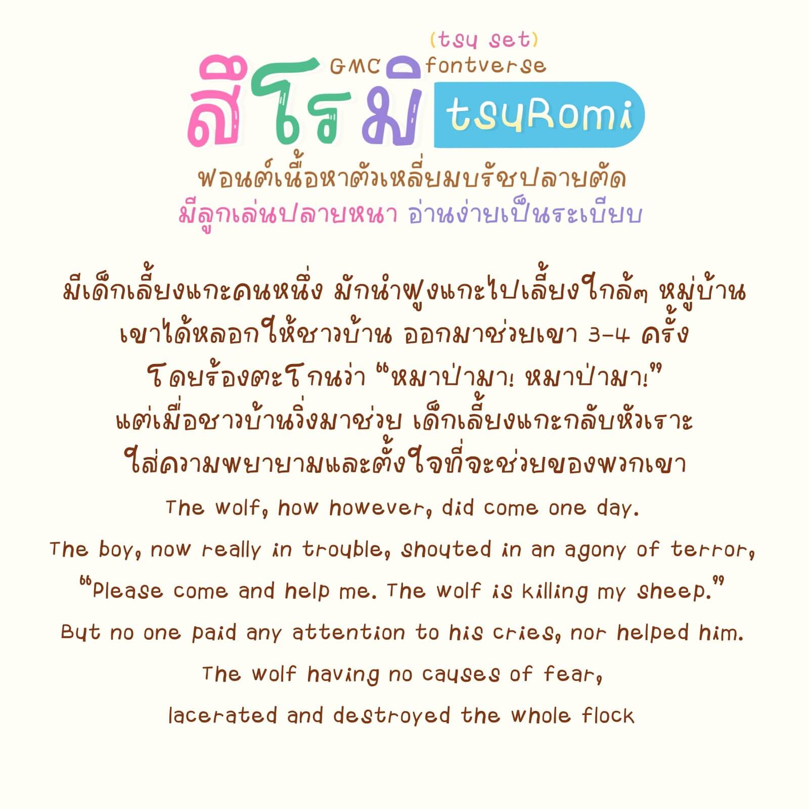 สึโรมิ – ฟอนต์เนื้อหาตัวเหลี่ยมบรัชปลายตัด มีลูกเล่นปลายหนา อ่านง่าย เป็นระเบียบ