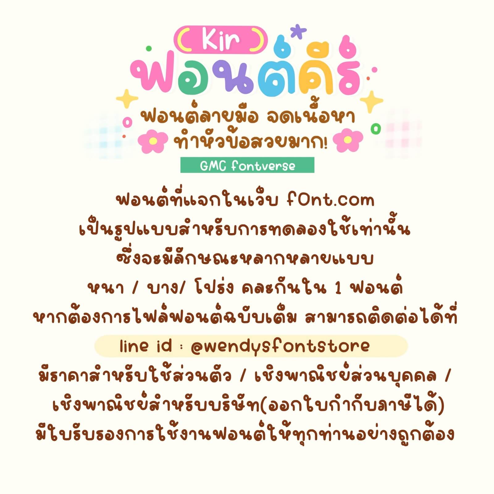 Facebook : ฟอนต์ลายมือเวนดี้ wendysfontstore : gmc fontverse
