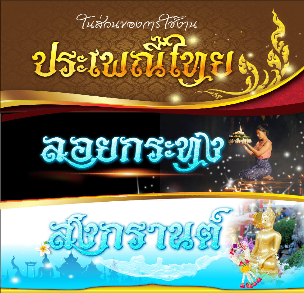 เคอาร์ต ลายไทย – เป็นฟอนต์ที่ออกแบบโดยใช้ลายไทยเป็นแม่แบบ เน้นใช้งานได้หลายประโยชน์