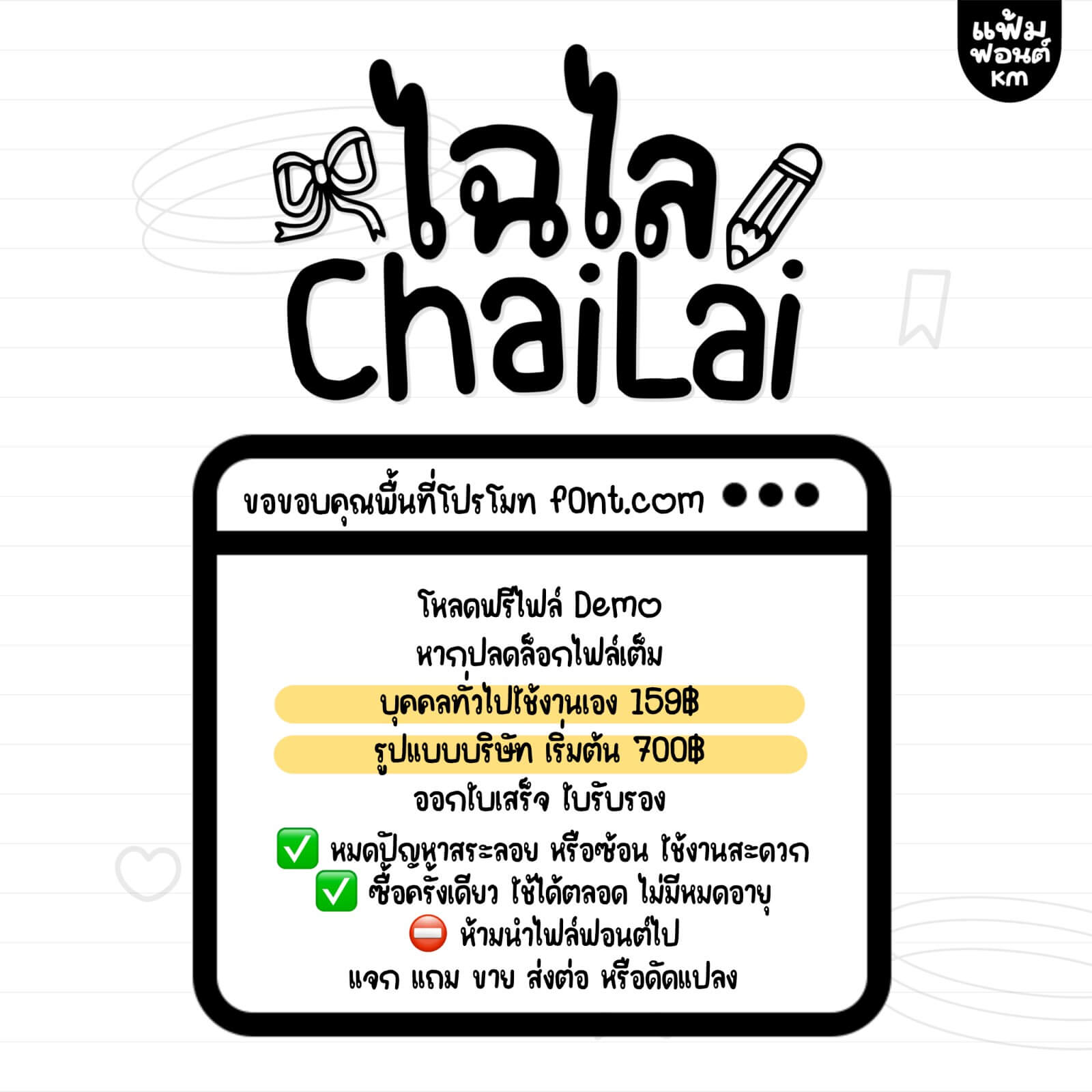 ห้ามแจก ขาย ส่งต่อ ดัดแปลง ไฟล์ฟอนต์โดยเด็ดขาด