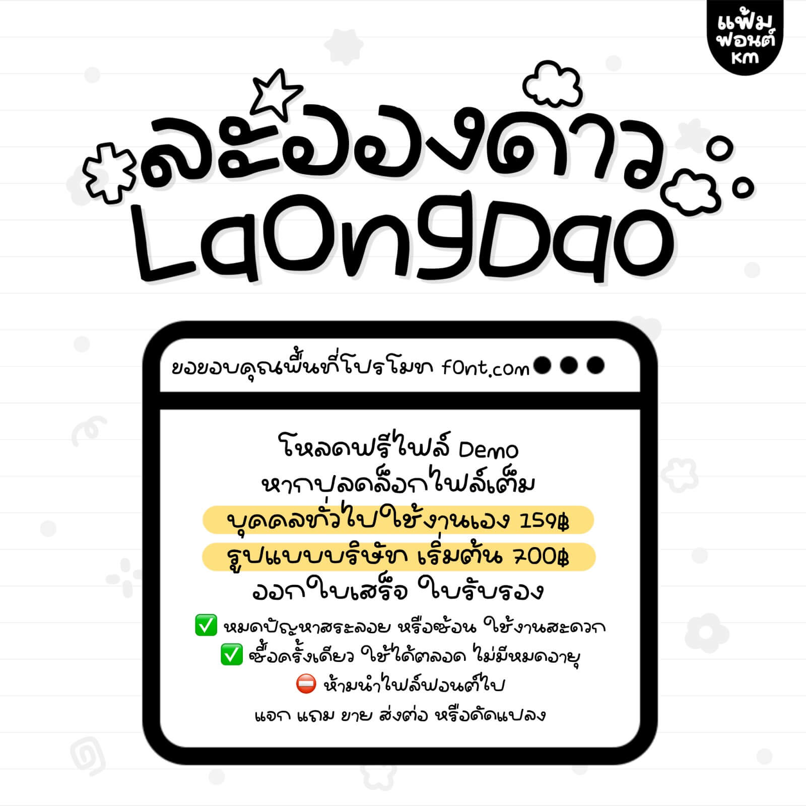 ห้ามแจก ขาย ส่งต่อ ดัดแปลง ไฟล์ฟอนต์โดยเด็ดขาด