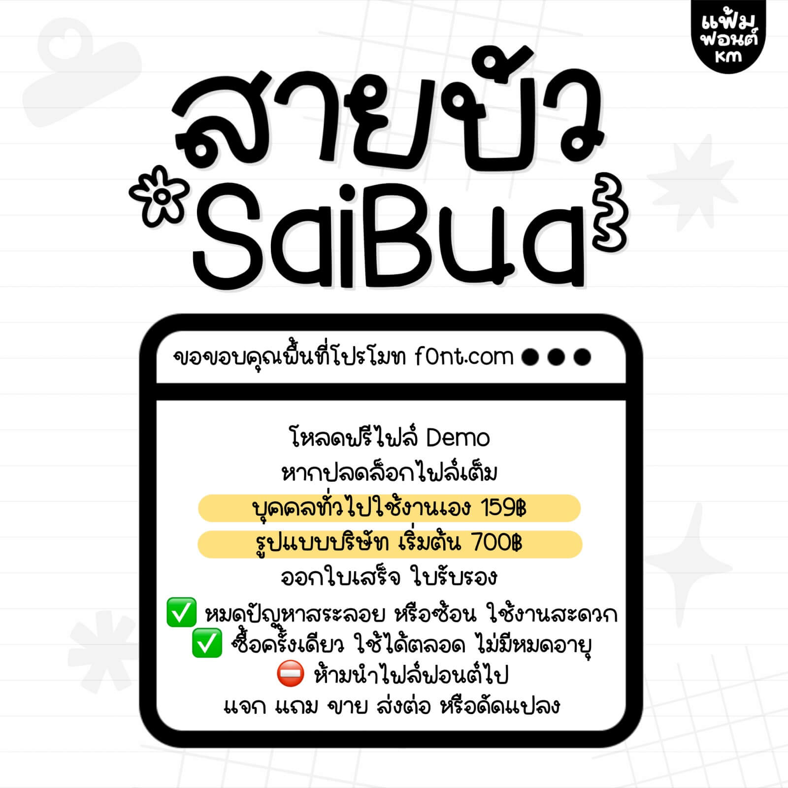 ห้ามแจก ขาย ส่งต่อ ดัดแปลง ไฟล์ฟอนต์โดยเด็ดขาด