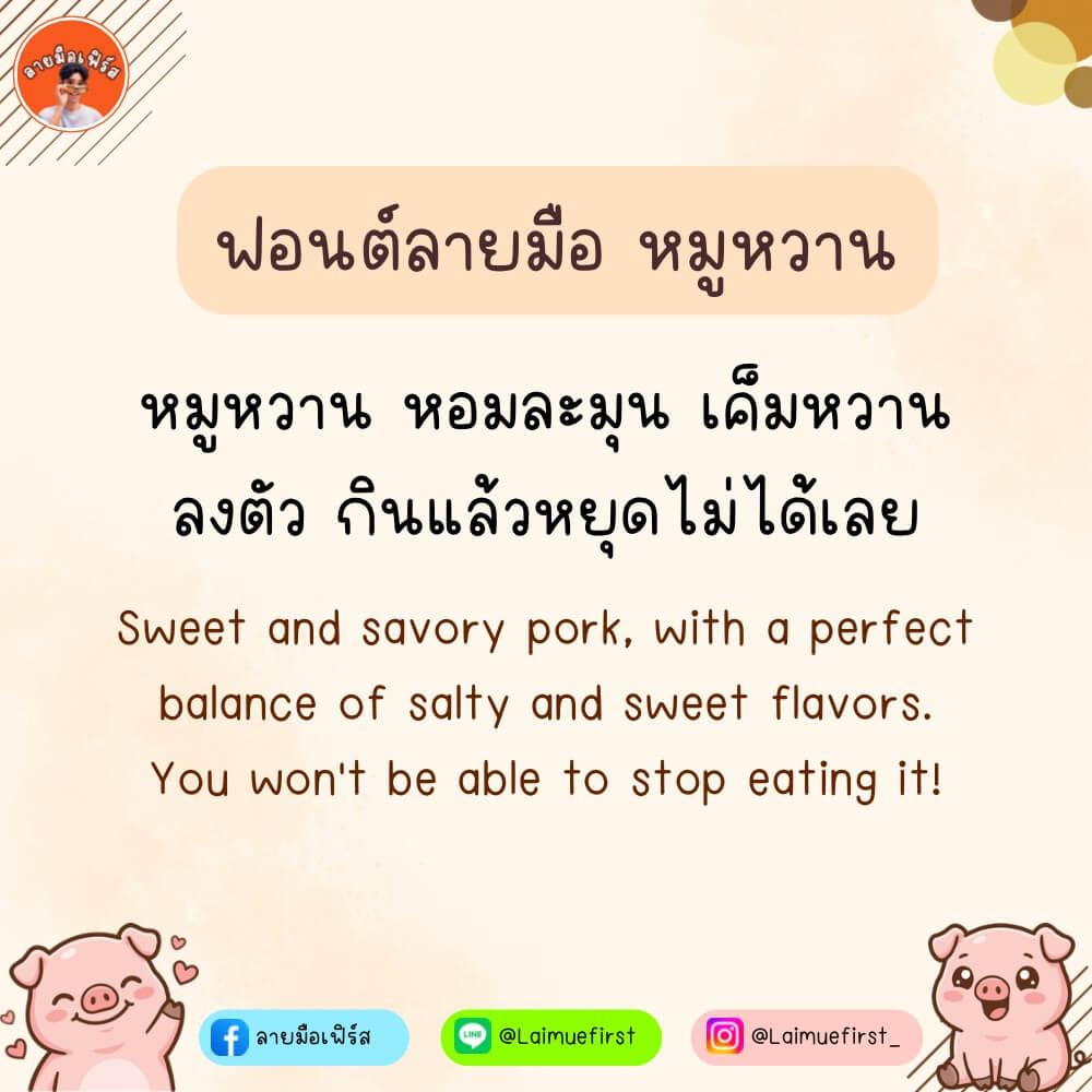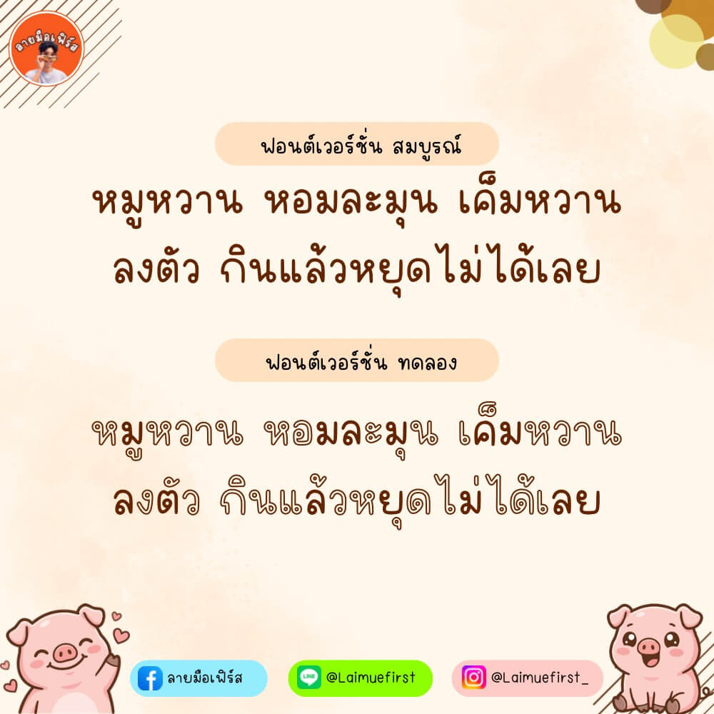 ฟอนต์ลายมือ หมูหวาน – แจกฟรีสำหรับทดลองใช้งานแบบส่วนตัว เวอร์ชันทดลอง (Demo)