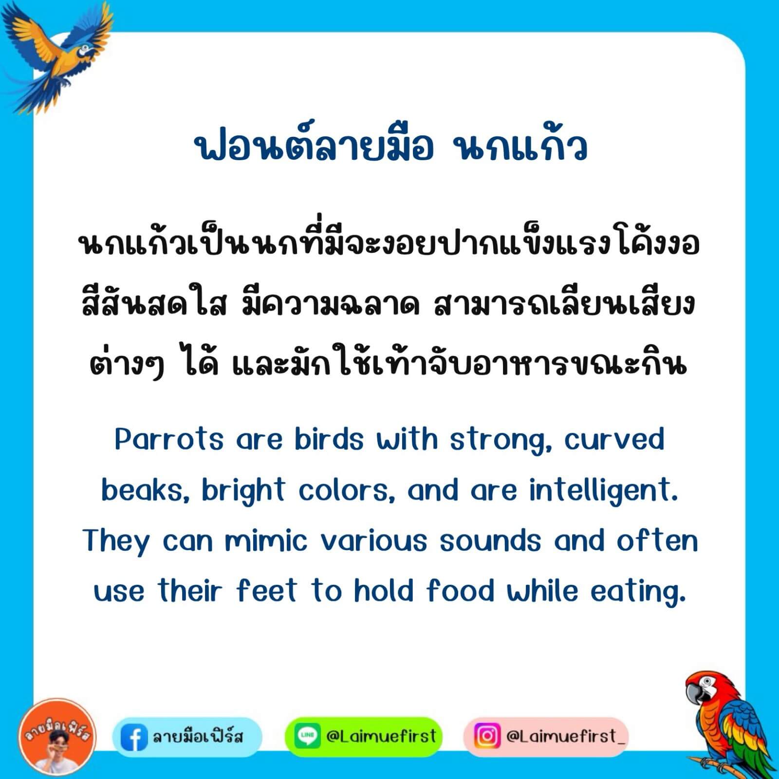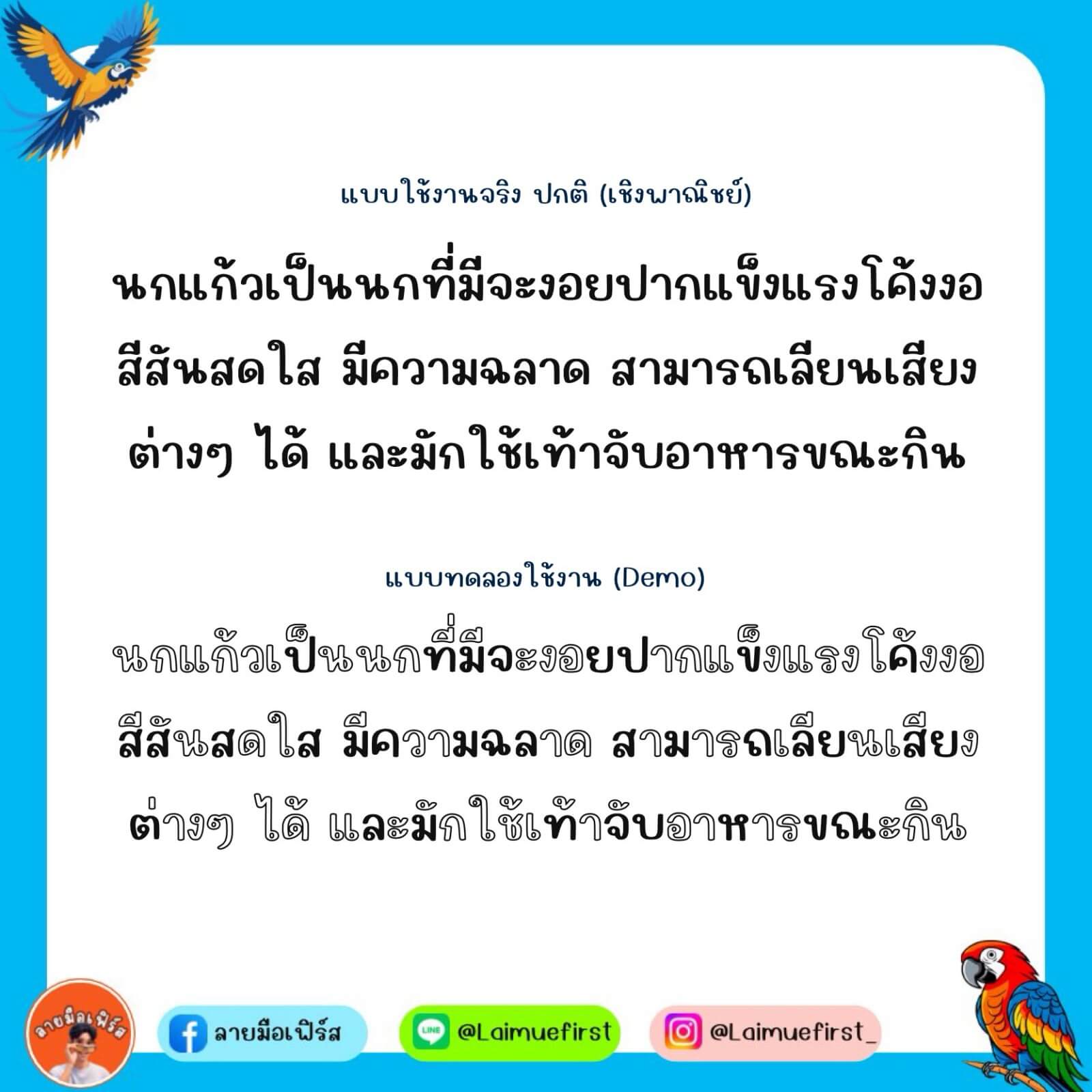 ฟอนต์ลายมือ นกแก้ว – แจกฟรีสำหรับทดลองใช้งานแบบส่วนตัว เวอร์ชันทดลอง (Demo)