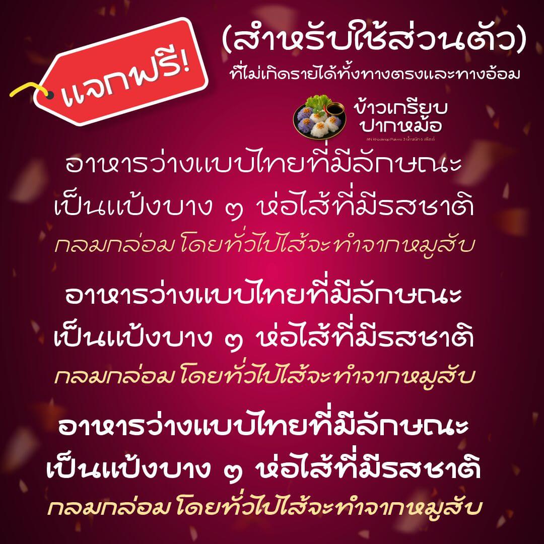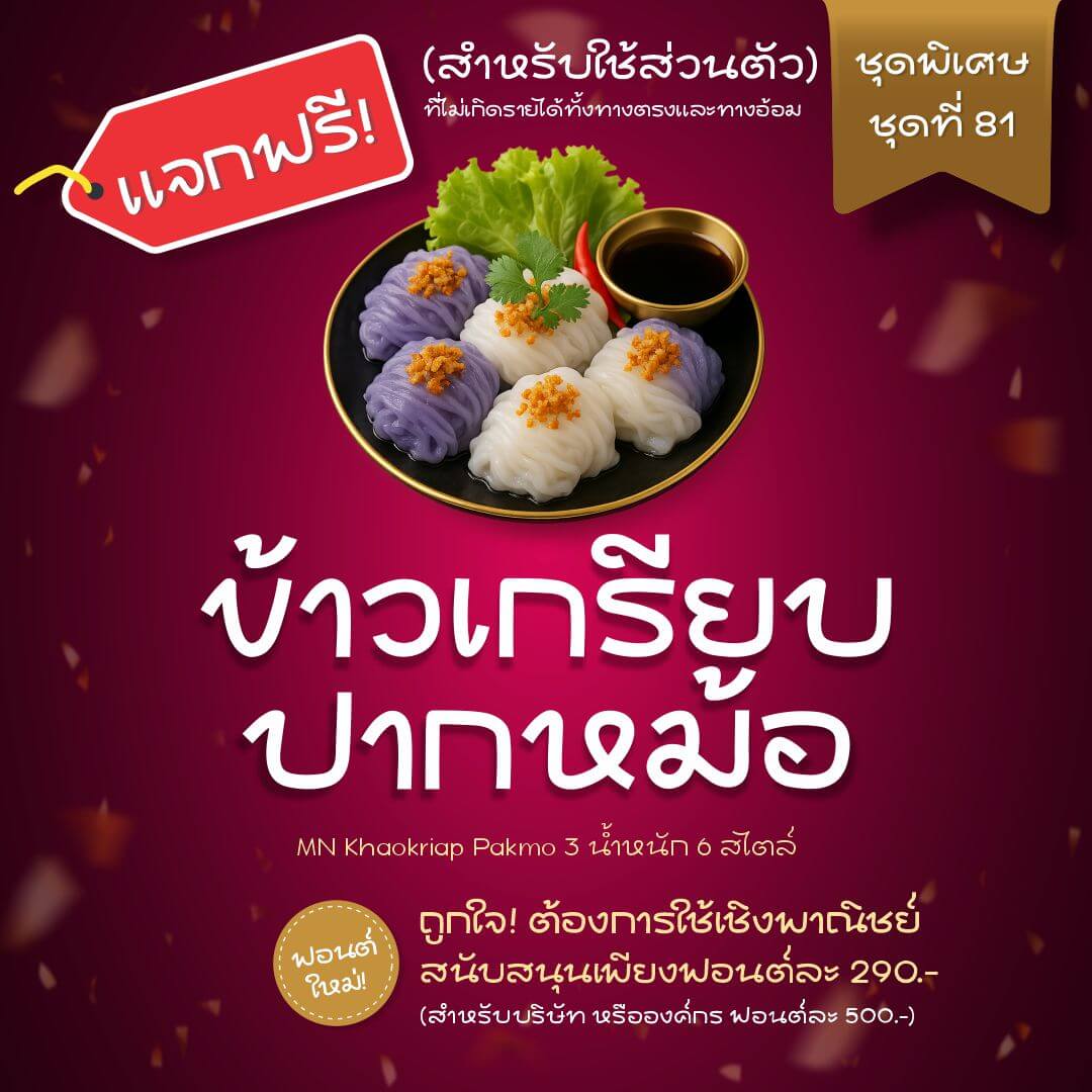 ข้าวเกรียบปากหม้อ ชุดพิเศษใหม่ – แจกฟรี!! สำหรับใช้ส่วนตัวกับงานที่ไม่เกิดรายได้เท่านั้น ถูกใจ! ต้องการใช้เชิงพาณิชย์ ราคาเริ่มต้น 290.-