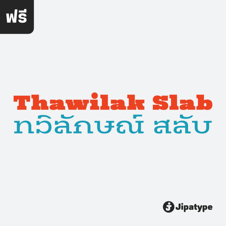 ขอแนะนำ “Tawilack Slab” ฟอนต์ serif แบบ slab ที่แสดงถึงความแข็งแกร่งและความมั่นคง ทวีลักษณ์ สลับ มีรูปทรงกว้าง แข็งแรงและมั่นคง คอนทราสต์ต่ำทำให้เกิดความกลมกลืนระหว่างเส้นหนาและเส้นบาง ทำให้ได้แบบอักษรที่สวยงามและอ่านง่าย ด้วยรูปลักษณ์ที่โดดเด่น ทวีลักษณ์ สลับ จึงสมบูรณ์แบบสำหรับโปรเจกต์ที่ต้องการความชัดเจนและมั่นใจ ไม่ว่าจะใช้พาดหัว หรือสร้างแบรนด์ Thawilack Slab ก็สร้างความประทับใจได้ไม่รู้ลืมด้วยรูปลักษณ์ที่แข็งแกร่งและมั่นคงดึงดูดความสนใจ แบบอักษรนี้เป็นตัวเลือกอเนกประสงค์ที่สามารถปรับเข้ากับบริบทการออกแบบต่างๆ ได้อย่างลงตัว ทำให้เป็นคู่หูที่ยอดเยี่ยมสำหรับทั้งสิ่งพิมพ์และสื่อดิจิทัล ออกแบบโดย : อานุภาพ ใจชำนาญ (Anupap Jaichumnan)สามารถใช้งานฟอนต์ได้ฟรีในเชิงพาณิชย์ ผ่านแอปฯ ของจิปาไทป์ ดูรายละเอียดและดาวน์โหลดแอปฯได้ที่ : jipatype.comทดลองพิมพ์ได้ที่ : jipatype.com/thawilak-slab/