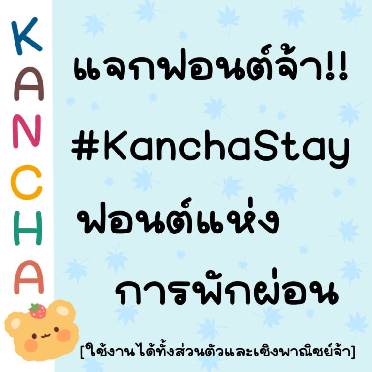 แจกฟอนต์จ้า ^^KanchaStay เป็นฟอนต์ตัวอ้วนๆ อวบๆ น่ารัก มี 3 ไฟล์ (คือตัวปกติ, ตัวเลขไทยเป็นอิโมจิน่ารักๆ และตัวโปร่งค่ะ)สามารถนำไปใช้ได้ฟรี ทั้งส่วนตัวและเชิงพาณิชย์ค่ะ