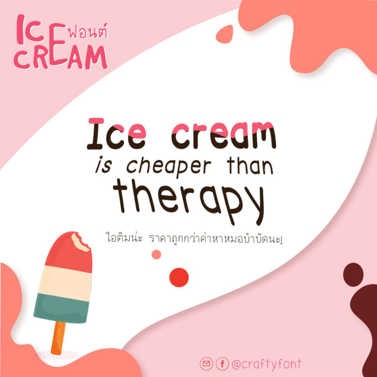 หน้าร้อนแบบนี้ต้องกินไอติมเย็นๆ ให้ชื่นใจ ฟอนต์ไอติมออกแบบมาให้เป็นฟอนต์มีหัว แต่ทำให้หัวเล็ก บีบตัวอักษรให้แคบลง (กว่าที่ Crafty font เคยทำ) ให้ความรู้สึกเป็นมิตรมากขึ้น!