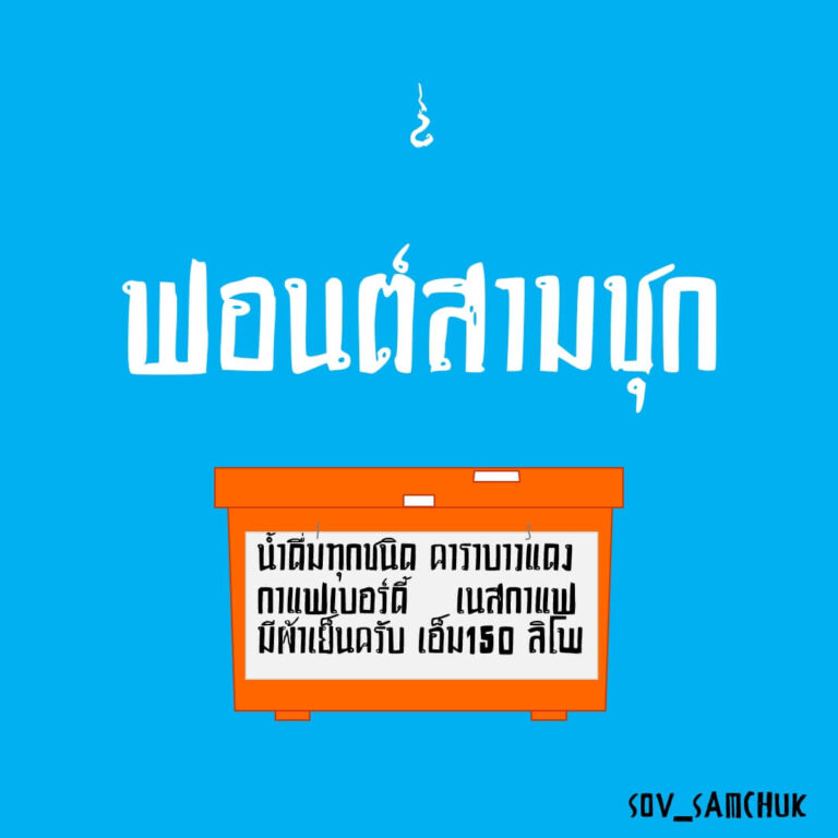 ฟอนต์ลายไทย เป็นฟอนต์ที่พยายามทำด้วยตัวเองหลายหน แต่ก็ไปไม่รอดสักหน พอเห็นฟอนต์ที่ อ.จินดา เนื่องจำนงค์ post clip สอนในเพจ อักษร ตัวเขียน ตามด้วยภาพถ่ายชุดอักษร ก็เลยไปขออาจารย์มาทำฟอนต์เลยทันที