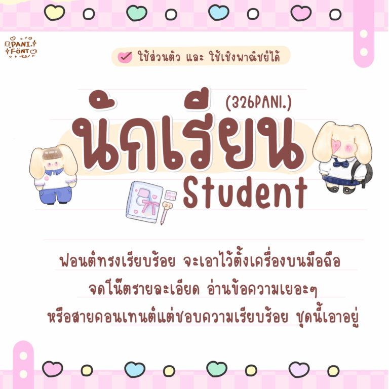 ฟอนต์ 326PANI.Student – โหลดทดลองใช้ฟรีตัว Demo ฟอนต์ทรงเรียบร้อย จะเอาไว้ตั้งเครื่องบนมือถือ จดโน้ตรายละเอียด อ่านข้อความเยอะๆ หรือสายคอนเทนต์แต่ชอบความเรียบร้อย ชุดนี้เอาอยู่ค่ะ