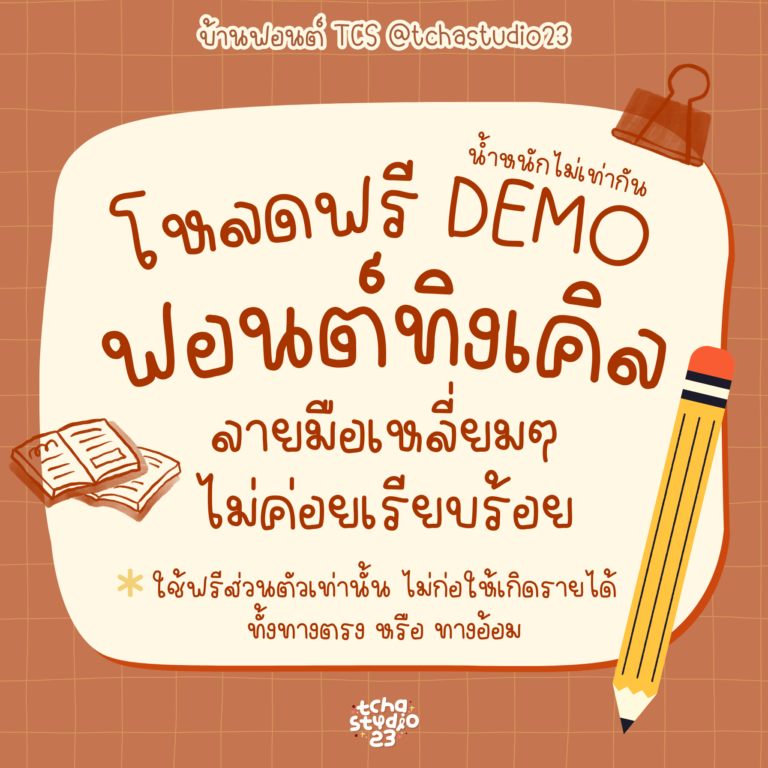 ฟอนต์หิวข้าว โหลดใช้ฟรีตัว Demo – ชุดนี้ตั้งใจเขียนแนวบาง ตัวชิดหน่อย ให้อารมณ์เขียนเอง เขียนสด ตัวอักษรจะดุ๊กดิ๊กนิดๆ (แอนทำไฟล์หนา กับเส้นแบน และชุดช่องไฟกว้างเพิ่มให้ด้วยค่ะ)