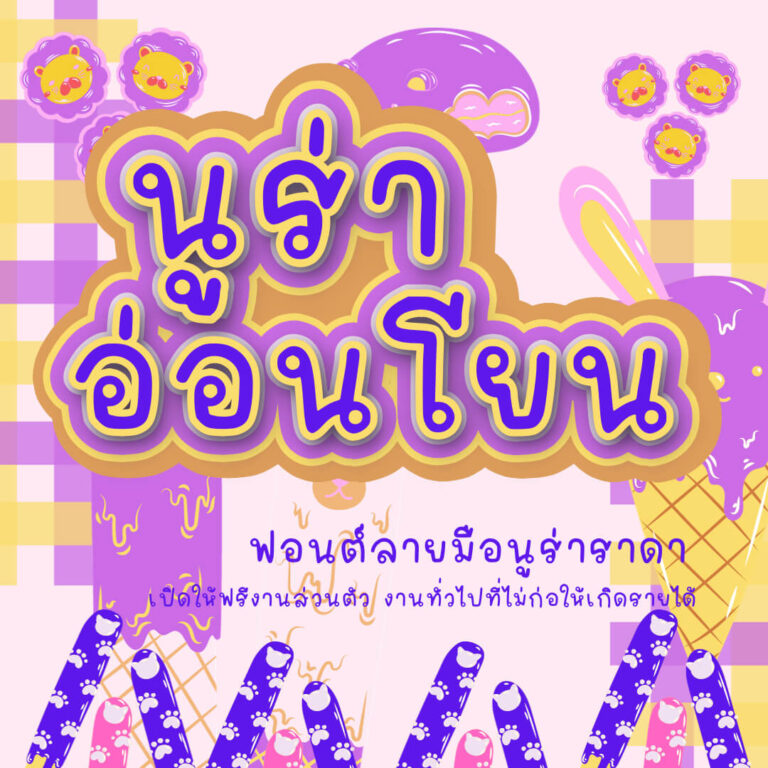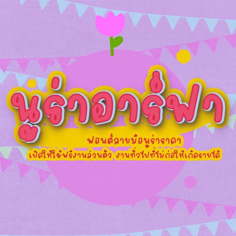 ฟอนต์ลายมือน่ารัก ฟอนต์มีหัว เหมาะเขียนโน้ต มีด้วยกัน 3 น้ำหนัก คือ บาง ปกติ หนา นูร่าราดาเปิดให้ใช้ฟรีงานส่วนตัวและงานทั่วไป น้ำหนักบางนะคะ