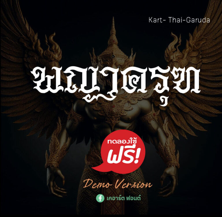 เคอาร์ต พญาครุฑ – เป็นฟอนต์ที่แนวคิดความแหลมคม ของกงเล็บและจงอยปากพญาครุฑ ฟอนต์จึงออกมาแหมคมดุดัน และสง่างามเหมือนกางปีก