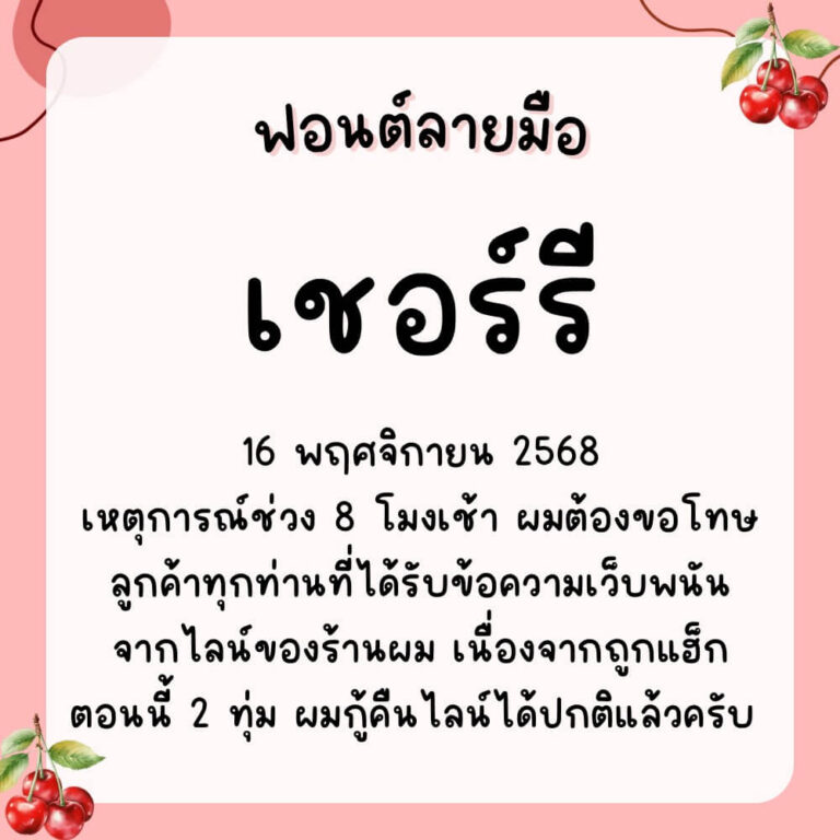 ฟอนต์ลายมือ เชอร์รี่– แจกฟรีสำหรับทดลองใช้งานแบบส่วนตัว เวอร์ชันทดลอง (Demo)