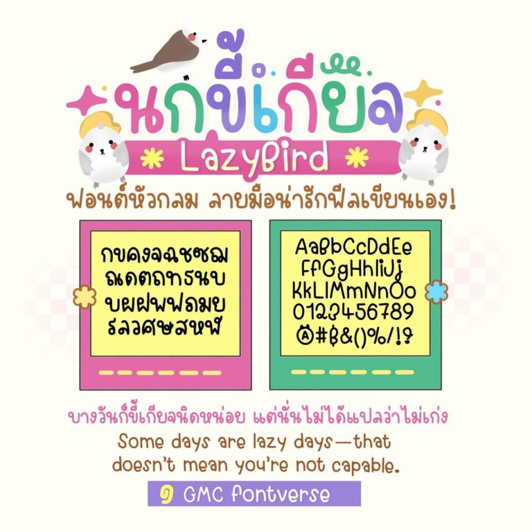 ฟอนต์นกขี้เกียจ– ฟอนต์แนวลายมือวัยรุ่น หัวโต น่ารัก