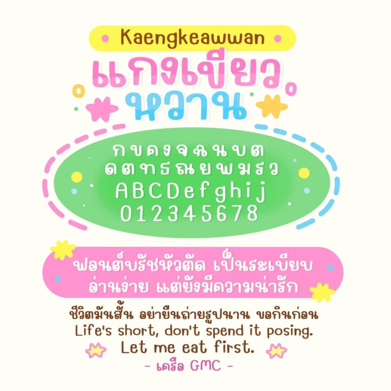 ฟอนต์แกงเขียวหวาน – ฟอนต์ลายมือเป็นระเบียบ เรียบร้อย อ่านง่าย แต่ก็ยังคงความน่ารัก